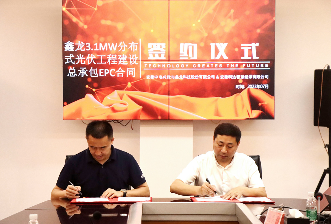 近日,安徽科達(dá)智慧能源科技有限公司(以下簡(jiǎn)稱“科達(dá)智慧能源”)與中電興發(fā)與鑫龍科技股份有限公司(以下簡(jiǎn)稱“中電興發(fā)”)3.1MW分布式光伏總承包項(xiàng)目合同順利簽約。