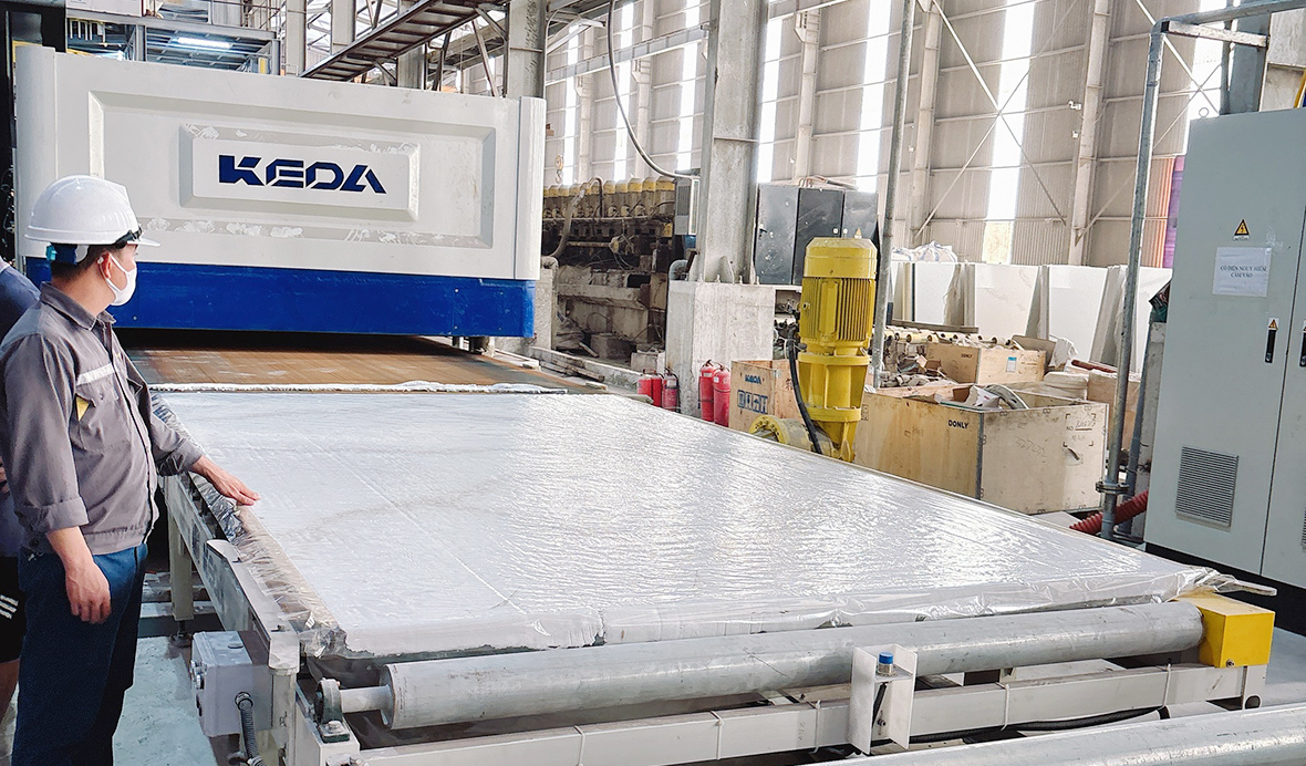 近日,科達石材機械越南V項目石英石生產線順利投產,這是科達石材機械在該客戶成功投產的第六條生產線。