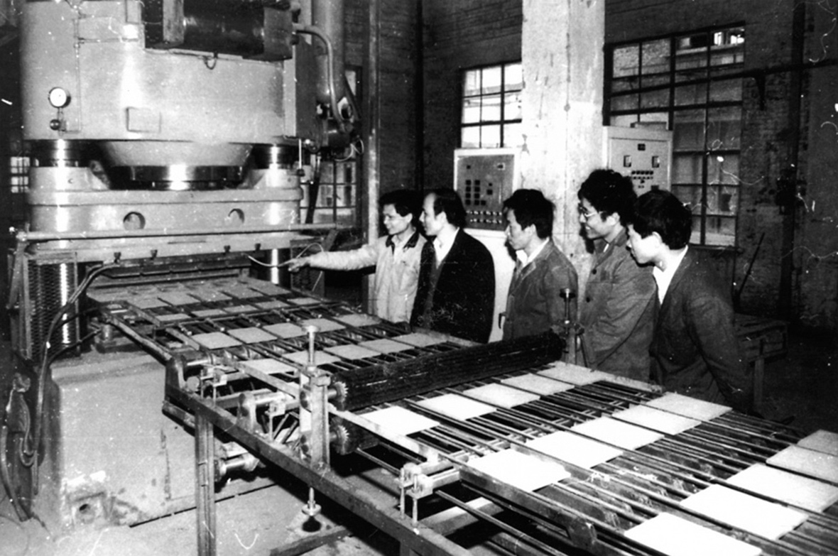 ▲YP600自動(dòng)液壓機(jī)于1988年12月25日在石灣建陶廠壓出第一批彩釉磚。
