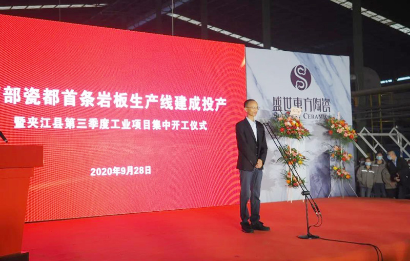日前,在舉國上下喜迎新中國成立71周年華誕之際,夾江縣盛世東方陶瓷有限公司(以下簡稱“盛世東方”)在其生產(chǎn)基地盛大舉行了超韌健康巖板產(chǎn)品發(fā)布會。盛世東方董事長方海瓊、夾江縣政府領(lǐng)導(dǎo),國內(nèi)經(jīng)銷商、供應(yīng)商合作伙伴及新聞媒體等數(shù)百人出席了發(fā)布會,共同見證盛世東方首條1200×2400(mm)巖板生產(chǎn)線建成投產(chǎn)的高光時刻。