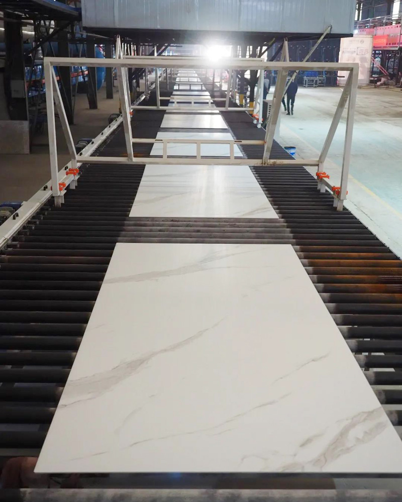 在盛世東方1200×2400(mm)高端智能巖板生產(chǎn)線上,恒力泰YP16890壓機、科達(dá)最新工業(yè)4.0+數(shù)字智能化高端巖板窯爐、七層節(jié)能(全余熱)干燥器、窯后全線儲磚系統(tǒng)、數(shù)控陶瓷大板巖板拋光生產(chǎn)線、大板全兼容自動包裝線悉數(shù)登場,為盛世東方貢獻(xiàn)了高質(zhì)量的巖板新品。