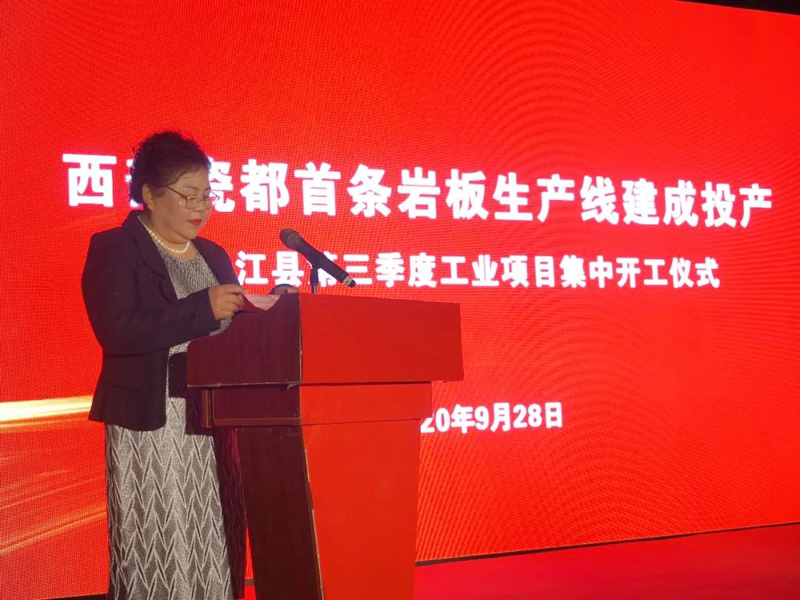 “2020年公司產(chǎn)品實現(xiàn)轉(zhuǎn)型升級,全面淘汰原有1條高耗能低產(chǎn)能的內(nèi)墻磚生產(chǎn)線,并引進(jìn)國際先進(jìn)技術(shù)裝備與健康材料,開發(fā)順應(yīng)新時代的新型板材,快速籌建4條工業(yè)智能制造4.0巖板生產(chǎn)線。9月初,我公司首條1200×2400(mm)、800×2600(mm)巖板線全面順利投產(chǎn),隨著我公司超薄大規(guī)格巖板生產(chǎn)線竣工點火,產(chǎn)品規(guī)格達(dá)1600×3200(mm),厚度3-6mm, 我們要打造西部超韌健康板材的領(lǐng)航企業(yè)?!狈胶-傇谕懂a(chǎn)儀式上表示。