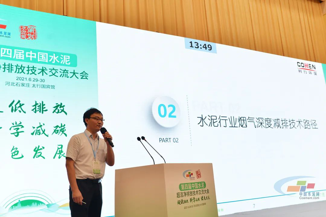 科行環(huán)保技術(shù)總監(jiān)尹海濱向與會人員做《水泥窯煙氣多污染物超低排放技術(shù)》匯報。為水泥行業(yè)煙氣多污染物深度減排提供技術(shù)路徑,介紹內(nèi)容包括高溫高/中塵、中溫中塵、中溫低塵技術(shù)的研發(fā)過程,各技術(shù)鏈的優(yōu)勢和適用條件,并對技術(shù)路徑的選擇提供了“科行建議”。