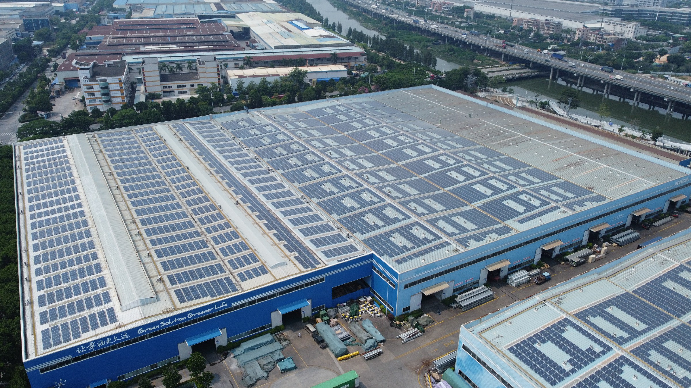 佛山科達(dá)制造仙涌廠區(qū)1MW分布式光伏項目航拍圖