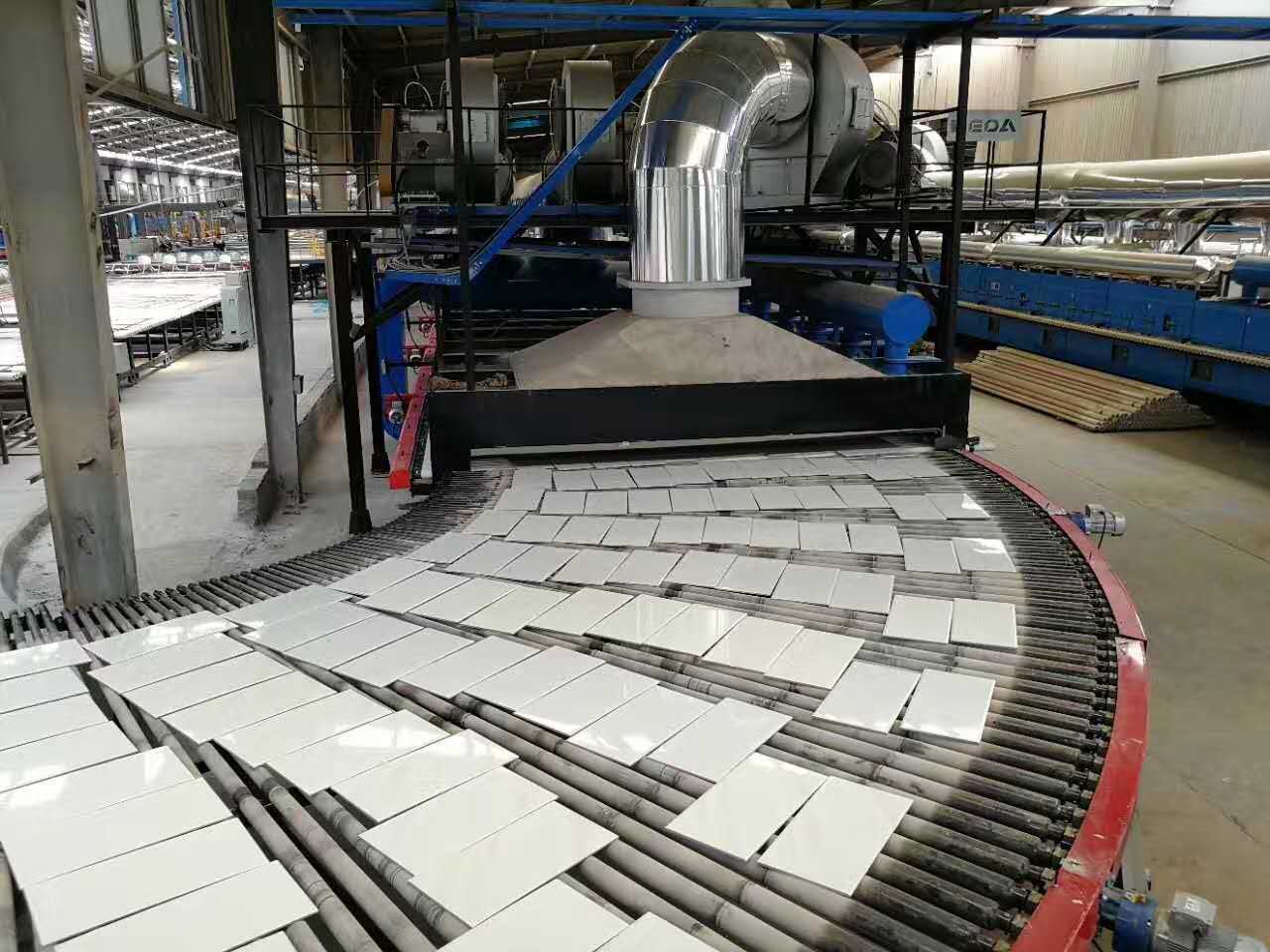 今年年初,由科達(dá)承建的行業(yè)首條3.85米寬窯爐在臨沂金昌成功投產(chǎn),其素?zé)G為3.85米寬,釉燒窯爐為3.45米寬,此次在泰安俊尚投產(chǎn)的窯爐釉燒走11片對走磚和斷面溫差提出了很大的挑戰(zhàn),如果走磚和溫差控制不好,將直接影響到產(chǎn)品的色差、磚型和整體效果。為了應(yīng)對這一挑戰(zhàn),科達(dá)在這條窯爐全窯配置了高標(biāo)準(zhǔn)的輥棒,不管是在強(qiáng)度方面還是在尺寸公差上都有了很大的提升,因而保證了走磚效果。同時,由于窯爐加寬,為了更好的控制窯內(nèi)的壓力,讓溫度處理和氣流更加平穩(wěn)均勻,在窯爐的燃燒系統(tǒng),科達(dá)對擋火墻和擋火板的布置和結(jié)構(gòu)做了特殊設(shè)計(jì)。