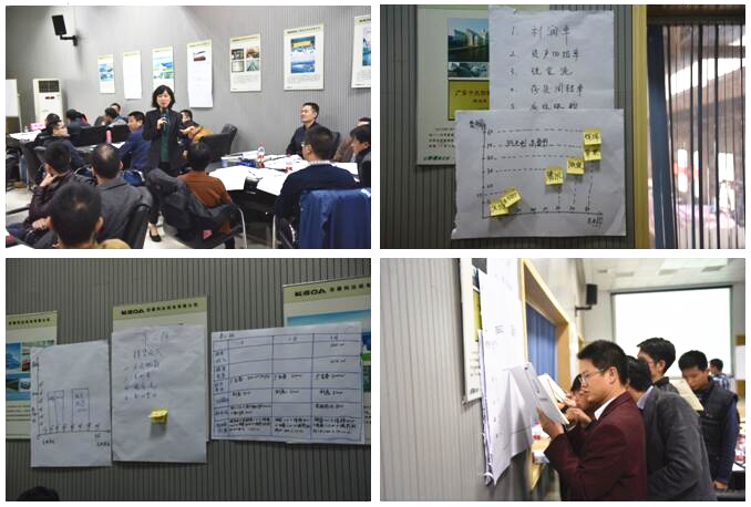 在本次集訓(xùn)中,各小組針對(duì)上一階段的項(xiàng)目進(jìn)展進(jìn)行了總結(jié)匯報(bào)。在匯報(bào)的過程中,老師針對(duì)存在的問題進(jìn)行了促動(dòng)和輔導(dǎo),特別指出大家在思路范圍上及與商業(yè)的緊密結(jié)合度不足的問題,并提出了改進(jìn)建議,同時(shí)要求學(xué)員以事實(shí)說話、以數(shù)據(jù)說話,找根源,杜絕拍腦袋、想當(dāng)然、“我以為”的現(xiàn)象和想法,為各小組后續(xù)的行動(dòng)計(jì)劃提供了有效輔導(dǎo)。與此同時(shí),小組學(xué)員間也積極群策群力,針對(duì)自己熟悉的部門和領(lǐng)域?yàn)槠渌〗M提供有效的意見及建議。在課程結(jié)束后,各小組自發(fā)進(jìn)行了小組研討及制定下一步行動(dòng)計(jì)劃方案,部分小組討論到深夜12點(diǎn),為各小組點(diǎn)贊。