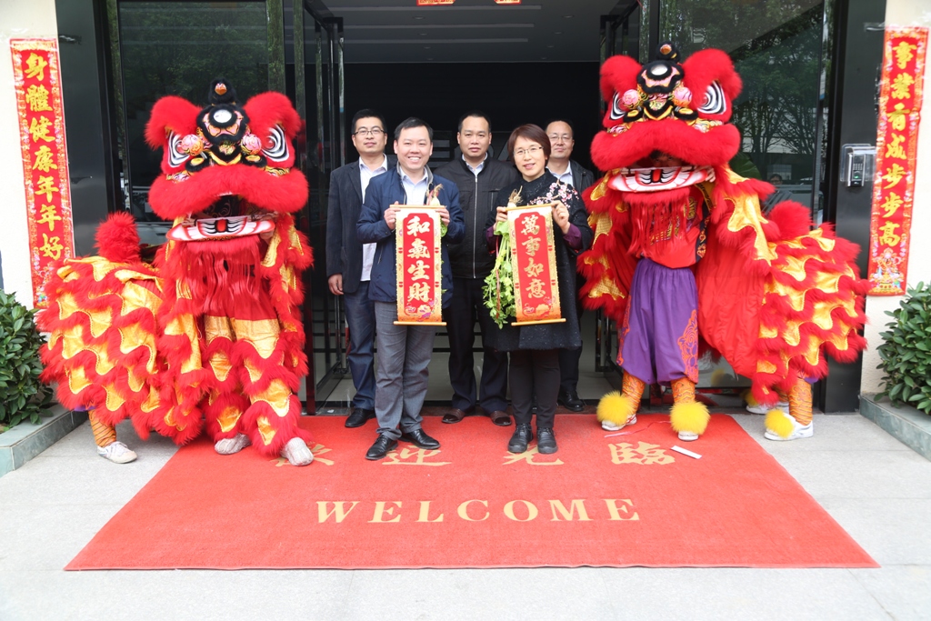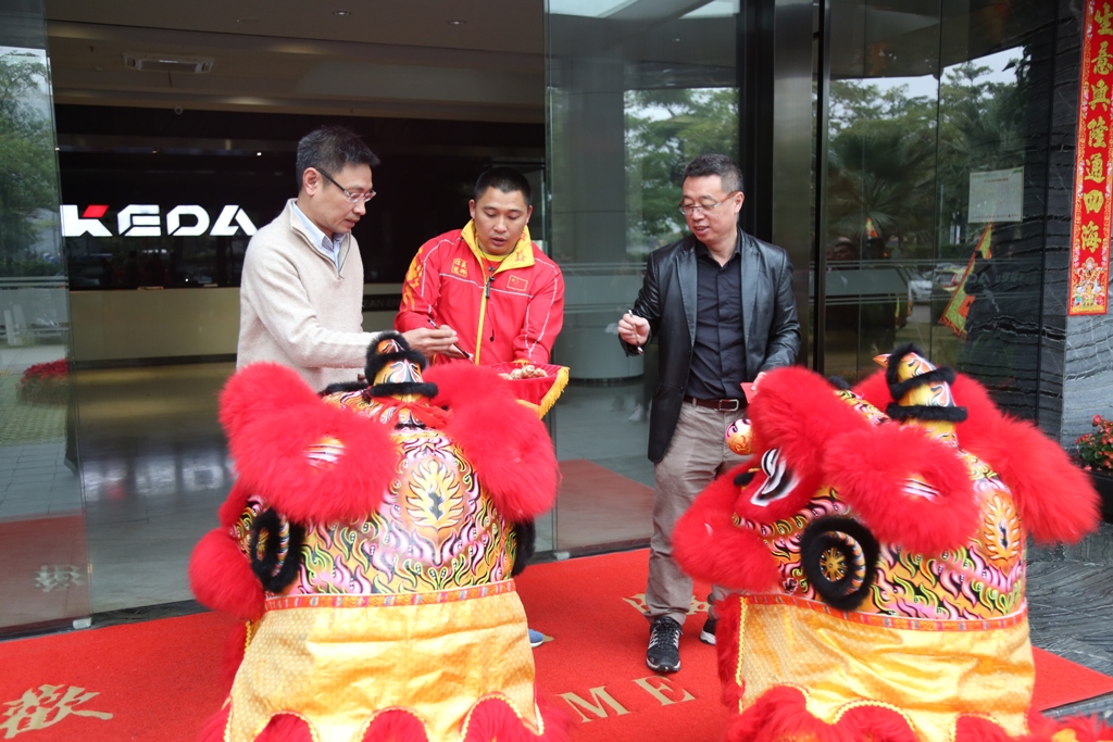 在公司總部三個廠區(qū)辦公大樓,現(xiàn)場洋溢著歡聲笑語,喜氣洋洋,公司副總裁鐘應(yīng)洲、周鵬等高管代表公司向廣大員工拜年,并為醒獅“點(diǎn)睛”,祥獅獻(xiàn)瑞,醒獅吐出吉祥對聯(lián)“大展宏圖,財(cái)源廣進(jìn)”,隨后幾位領(lǐng)導(dǎo)接過醒獅采青,接財(cái)接福、財(cái)源滾滾。寓示著全體科達(dá)人將以干勁滿滿,全新的姿態(tài)開啟新一年的“奮斗”模式。