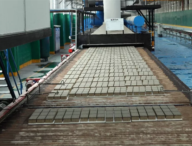 6月16日,由科達(dá)潔能為廣西新舵陶瓷承建的透水磚生產(chǎn)線正式出磚,產(chǎn)品的規(guī)格為100×200×55mm,當(dāng)天日產(chǎn)量達(dá)到1700平方米,優(yōu)等品率超過98%。這條生產(chǎn)線配備了兩臺(tái)KDT1800壓機(jī)和科達(dá)透水磚專用輥道窯,窯長289米,內(nèi)寬2.4米。