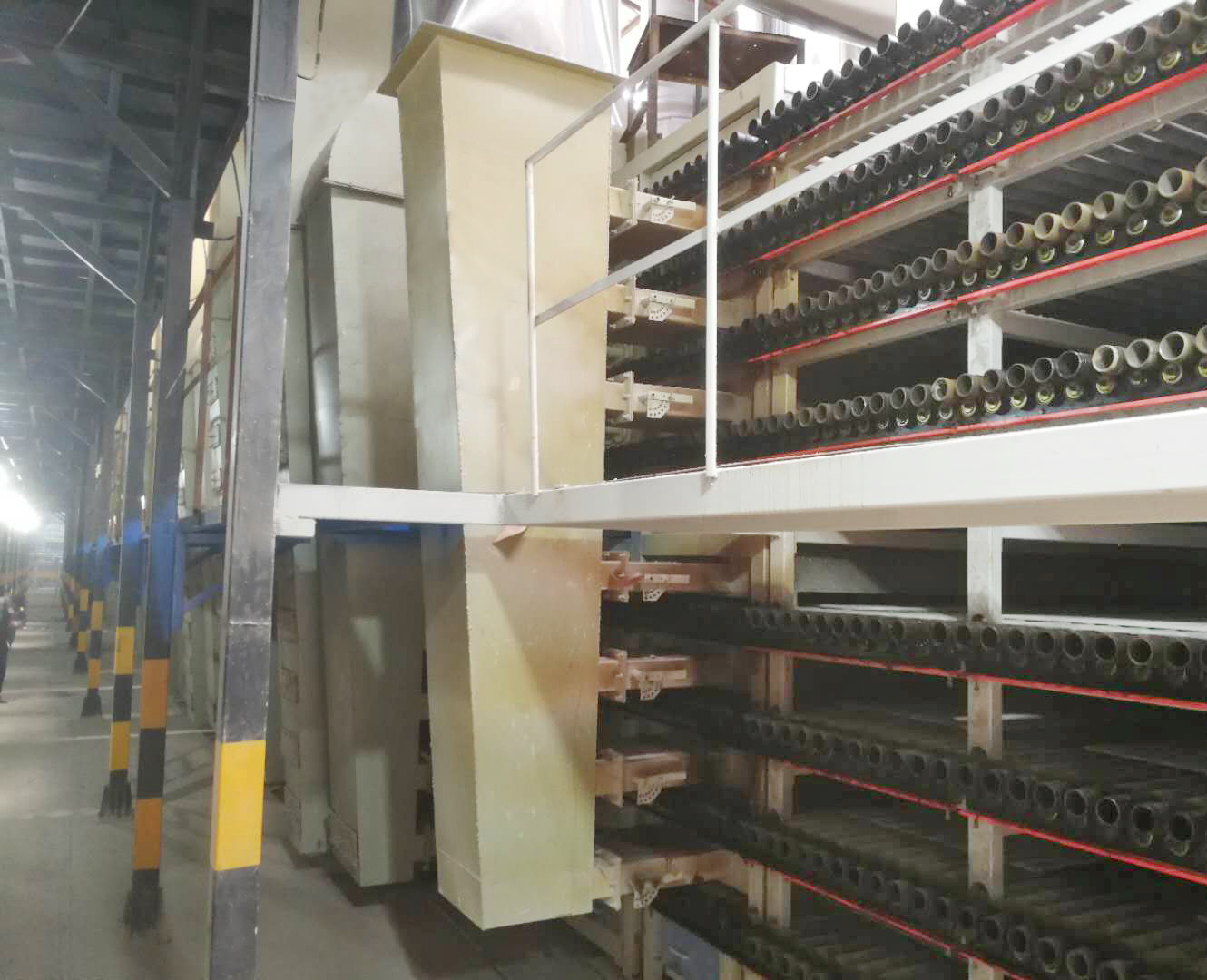 八層干燥器總長(zhǎng)度超過(guò)63米,內(nèi)寬3.2米,總高度超過(guò)6米,總高度增高以及場(chǎng)地受限均增加了施工的難度??七_(dá)項(xiàng)目施工團(tuán)隊(duì)克服困難,項(xiàng)目于3月2日竣工投產(chǎn),經(jīng)過(guò)近半個(gè)月的穩(wěn)定運(yùn)行,近日順利通過(guò)臨沂奧達(dá)的驗(yàn)收,完全達(dá)到客戶對(duì)能耗和磚坯質(zhì)量的要求,得到客戶的充分肯定。