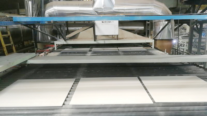 該生產(chǎn)線主要生產(chǎn)800×800(mm)微粉磚,并排走三片磚。運(yùn)行科達(dá)的八層干燥器后,出磚穩(wěn)定,且能耗大大降低。客戶舊有的干燥器設(shè)備不能充分利用窯爐的余熱及煙氣,必須通過(guò)輸入外部熱源方能保證設(shè)備正常運(yùn)行。科達(dá)的八層干燥器徹底舍棄了外部能源輸入這一項(xiàng)。除了能耗優(yōu)勢(shì)外,還具有以下特點(diǎn):各層溫差小、內(nèi)部截面溫差?。蛔叽u整齊。與此同時(shí),由于供熱和抽濕管道是外置式的,這些管道布置在窯箱體外部,傳動(dòng)鋼輥棒也不需要那么長(zhǎng),一定程度上也降低了電耗。