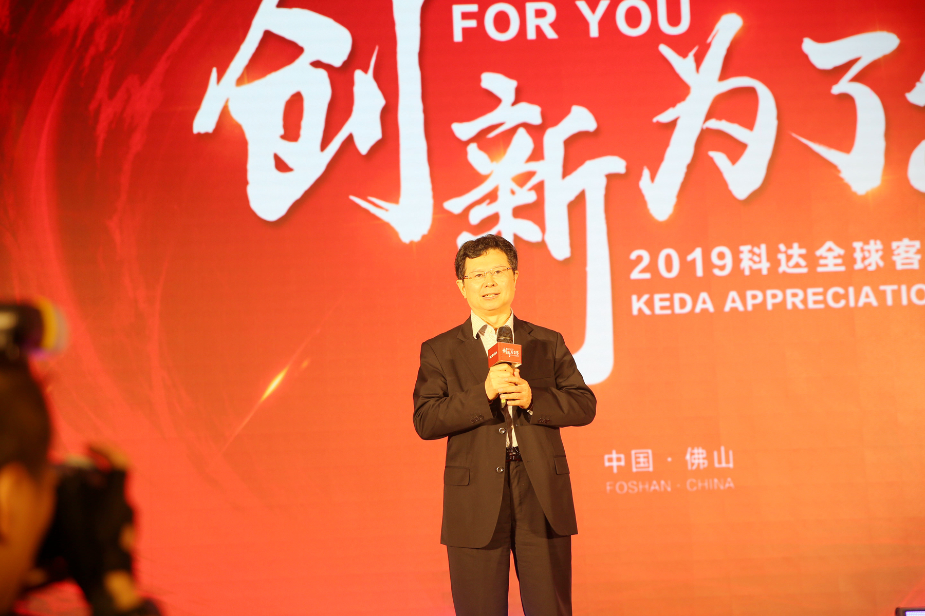 廣東陶協(xié)陳環(huán)會(huì)長(zhǎng)在隨后的致辭時(shí)表示,科達(dá)在改革開(kāi)放的大背景下,隨著中國(guó)陶瓷的高速發(fā)展崛起,取得了輝煌的成就,為推動(dòng)陶瓷行業(yè)的發(fā)展作出了突出的貢獻(xiàn),值得在座各位為科達(dá)的發(fā)展“喝彩”!他說(shuō)道,科達(dá)有兩個(gè)文化他感受很深。首先是“創(chuàng)新”的文化,科達(dá)前后兩任董事長(zhǎng)都是務(wù)實(shí)的領(lǐng)導(dǎo)者,整個(gè)科達(dá)團(tuán)隊(duì)秉承“創(chuàng)新永無(wú)止境”的精神不斷創(chuàng)新,積極開(kāi)發(fā)新的設(shè)備產(chǎn)品推向市場(chǎng),實(shí)實(shí)在在地提供性價(jià)比高的產(chǎn)品,推動(dòng)客戶發(fā)展的同時(shí)也帶動(dòng)了企業(yè)自身的發(fā)展;其次是“感恩”的文化。陳會(huì)長(zhǎng)說(shuō)邊董經(jīng)常講到“科達(dá)是陶瓷行業(yè)養(yǎng)大的孩子,要回報(bào)行業(yè)”。科達(dá)在行業(yè)也是有擔(dān)當(dāng),敢負(fù)責(zé)任,對(duì)客戶負(fù)責(zé)到底。邊董自己更是身體力行,團(tuán)結(jié)了行業(yè)內(nèi)能夠團(tuán)結(jié)的一切力量,積極打造“東方博洛尼亞”展會(huì),潭洲裝備與材料展的勝利開(kāi)幕,得到更多海內(nèi)外展商的支持,比第一屆取得了長(zhǎng)足的進(jìn)步,這是邊董的情懷,也是科達(dá)人的情懷,科達(dá)秉承這兩個(gè)文化定能在行業(yè)取得更大的發(fā)展。