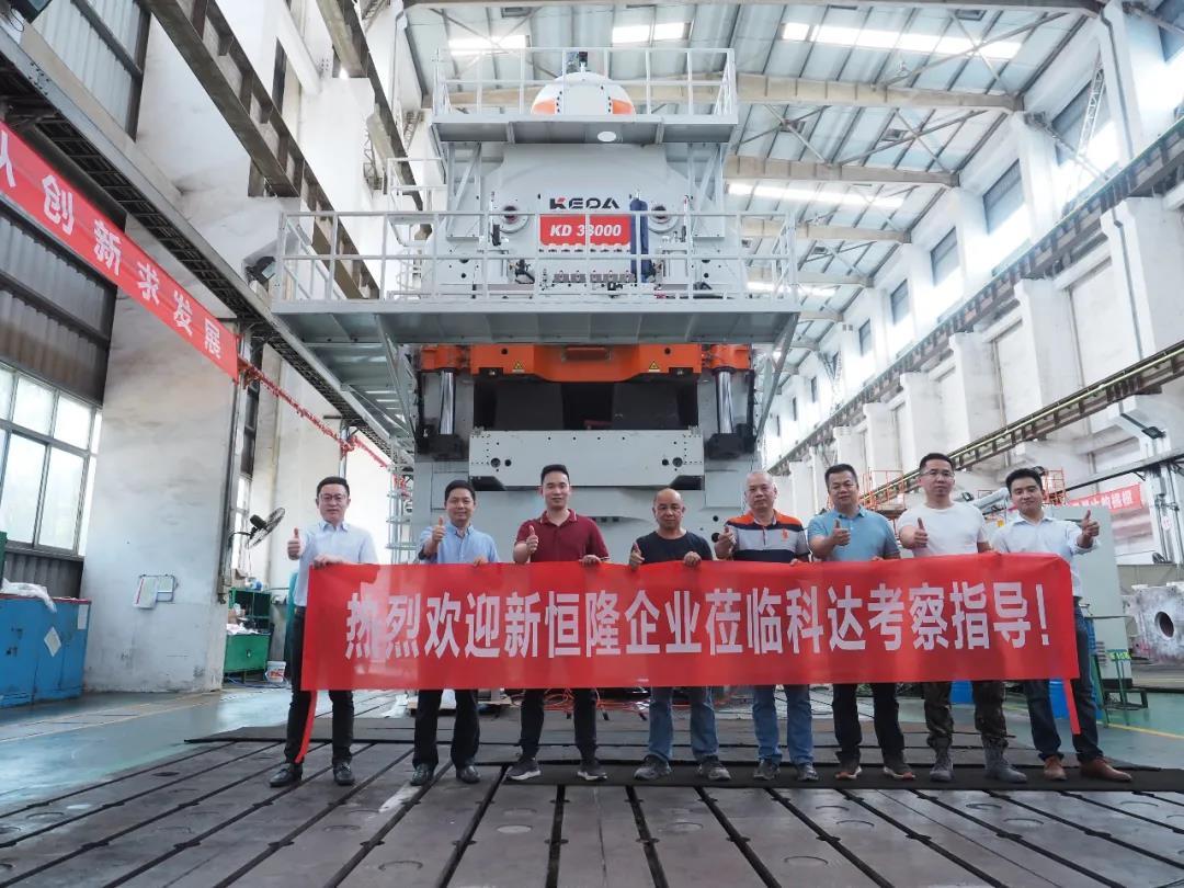 4月20日,新恒隆企業(yè)三水研發(fā)及生產(chǎn)基地總經(jīng)理羅浩樂(lè)帶領(lǐng)生產(chǎn)管理團(tuán)隊(duì)一行來(lái)訪科達(dá),科達(dá)營(yíng)銷總監(jiān)鐘琳、廣東銷區(qū)總經(jīng)理裴樹(shù)元等熱情接待了到訪來(lái)賓,并陪同參觀了科達(dá)壓機(jī)車間、拋光線及窯爐車間。在隨后的簽約儀式上,羅浩樂(lè)與鐘琳代表雙方正式簽署了“萬(wàn)噸巖板壓機(jī)”戰(zhàn)略合作合同。