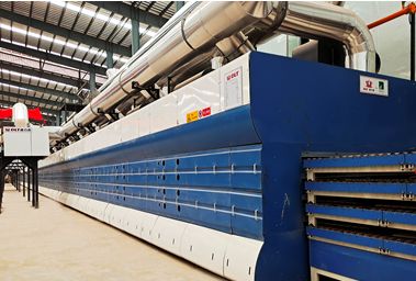德力泰在本次合作項(xiàng)目提供的裝備有:一條全新打造的天然氣“4.0能效標(biāo)桿數(shù)智時(shí)代”燒成窯(W3100/L392.7M)、一條EM系列六層自循環(huán)干燥器及全套釉線干燥。主要生產(chǎn)800×800(mm)的雙零吸水率全拋釉磚,設(shè)計(jì)產(chǎn)量是28000m2/天。