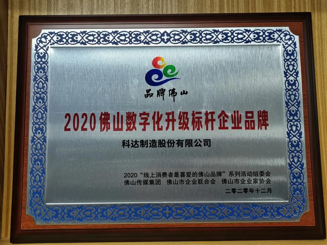 12月23日下午,佛山數(shù)字經(jīng)濟(jì)峰會暨品牌佛山授牌儀式舉行,現(xiàn)場揭曉了2020“線上消費(fèi)者最喜愛的佛山品牌”、2020“佛山數(shù)字化升級標(biāo)桿企業(yè)品牌”、2020“品牌佛山榜特色品牌”三大榜單。其中,科達(dá)制造榮獲2020“佛山數(shù)字化升級標(biāo)桿企業(yè)品牌”稱號。