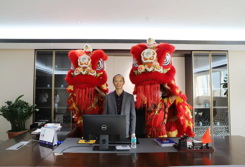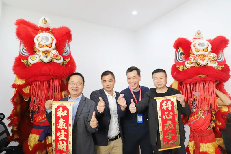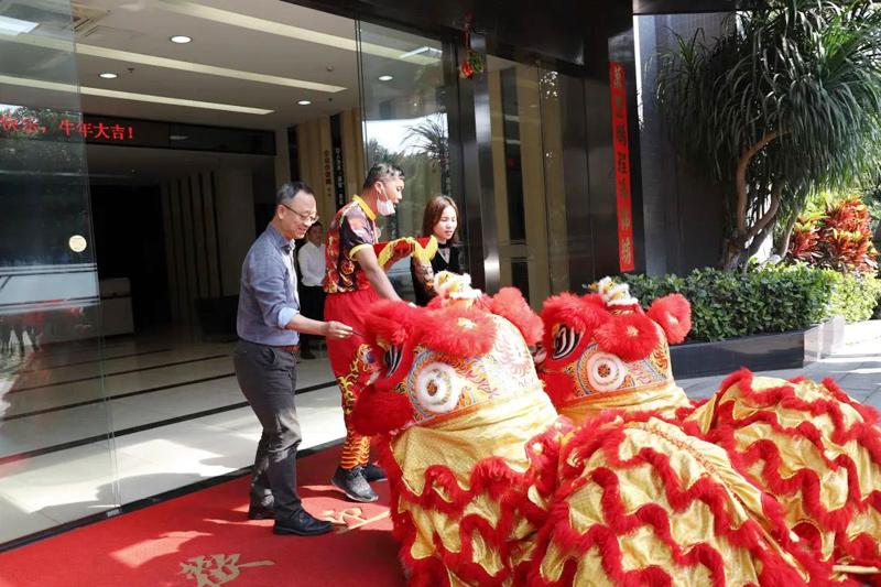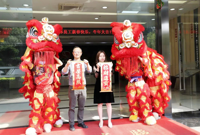 伴隨著起舞的醒獅、喧天的鑼鼓,邊董、楊總等高管代表公司迎春接福,為醒獅“點(diǎn)睛”,祥獅獻(xiàn)瑞,吐出吉祥對(duì)聯(lián)“財(cái)源廣進(jìn),招財(cái)進(jìn)寶”,隨后邊董、楊總等接過(guò)醒獅采青,接財(cái)接福,寓意新的一年瑞氣臨門(mén)、財(cái)源滾滾,企業(yè)發(fā)展步步高升。