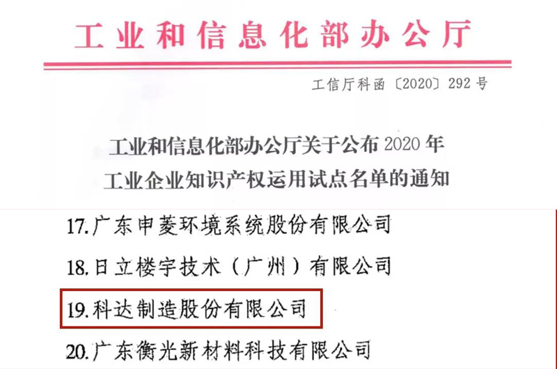 科達(dá)制造自成立以來,始終堅(jiān)持由“科”而“達(dá)”的創(chuàng)新發(fā)展道路,不斷提高知識(shí)產(chǎn)權(quán)獲取、維護(hù)與運(yùn)用和保護(hù)水平。憑借完善的知識(shí)產(chǎn)權(quán)管理體系及科達(dá)人“創(chuàng)新永無止境”的信念,公司在知識(shí)產(chǎn)權(quán)道路上已取得累累碩果:中國專利獎(jiǎng)3項(xiàng)、廣東省知識(shí)產(chǎn)權(quán)試點(diǎn)單位、廣東省知識(shí)產(chǎn)權(quán)保護(hù)重點(diǎn)企業(yè)、全國企事業(yè)知識(shí)產(chǎn)權(quán)試點(diǎn)單位、國家知識(shí)產(chǎn)權(quán)示范企業(yè)、中國企業(yè)專利500強(qiáng)。