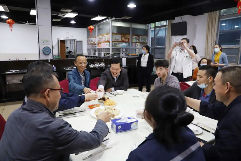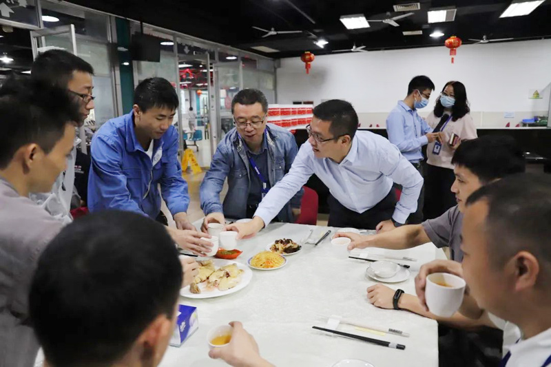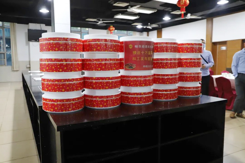 周主席在與科達(dá)員工代表共享盆菜前,發(fā)表了致辭講話,他表示,今年由于疫情的原因,政府號(hào)召外地務(wù)工人員就地過年。而廣大留守員工是政府非常關(guān)心的對(duì)象,順德區(qū)總工會(huì)更送出十萬份盆菜給順德區(qū)留守的員工,各級(jí)政府的人員也主動(dòng)到各個(gè)公司,與留守員工吃團(tuán)年飯,把黨和政府的關(guān)懷溫暖送至基層。他也表示,科達(dá)為留守員工努力營造家的氛圍,廠區(qū)內(nèi)有溫情的氛圍布置、令人印象深刻的打卡留影區(qū),同時(shí)在除夕夜多個(gè)廠區(qū)提供精心準(zhǔn)備的團(tuán)年飯,年初一至年初五更對(duì)員工免費(fèi)開放就餐……盡管員工留在順德過年,科達(dá)還是努力為員工提供一個(gè)和諧歡樂的農(nóng)歷新年。