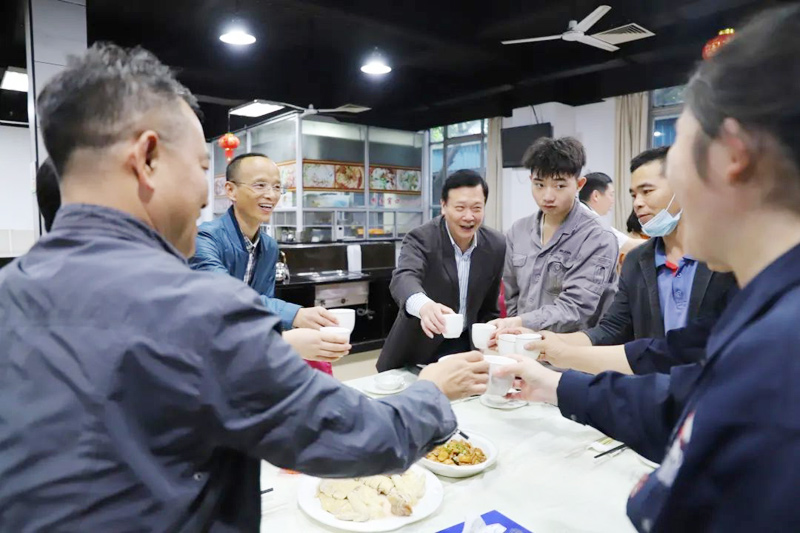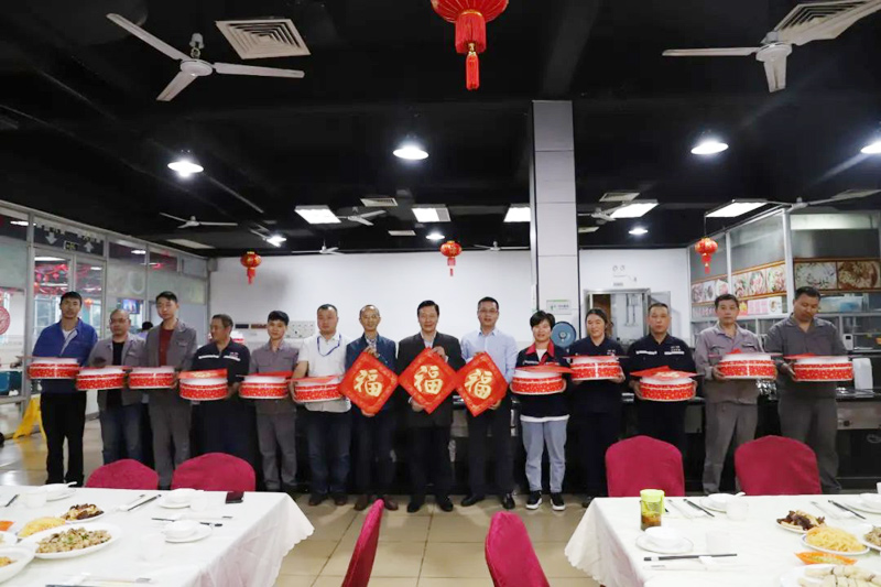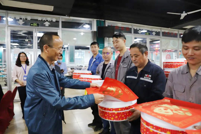 2月9日,為了關(guān)心慰問廣大就地過年的留守員工及檢查安全生產(chǎn)工作,順德區(qū)政協(xié)主席周文,副區(qū)長、區(qū)公安局局長陳志雄,陳村鎮(zhèn)鎮(zhèn)長容佰輝等順德區(qū)及陳村鎮(zhèn)領(lǐng)導(dǎo)到訪科達(dá)制造,并贈(zèng)送了由順德區(qū)總工會(huì)送出的愛心盆菜,與留守過年的外省籍職工代表共賀新春,送福字、吃盆菜、話家常,其樂融融。公司總經(jīng)理?xiàng)顚W(xué)先、副總裁周鵬等科達(dá)領(lǐng)導(dǎo)一同出席并與留守員工代表一道共進(jìn)溫馨的午宴。