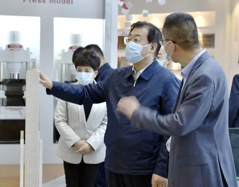 袁方市長一行首先來到展廳,了解了安徽科達(dá)機(jī)電發(fā)展歷程及主營業(yè)務(wù)。在得知安徽科達(dá)機(jī)電擁有多項(xiàng)國標(biāo)、行標(biāo)時(shí),袁方市長給予了高度認(rèn)可,他表示,一流企業(yè)做標(biāo)準(zhǔn)、二流企業(yè)做品牌、三流企業(yè)做產(chǎn)品,參與制定國標(biāo)、行標(biāo)彰顯了公司在行業(yè)內(nèi)的知名度和影響力。