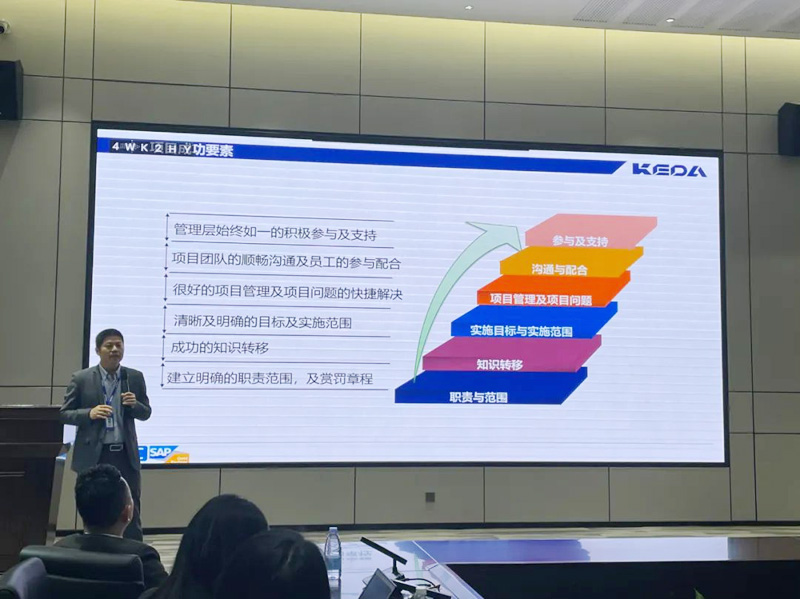 顧云公司項(xiàng)目經(jīng)理張新文首先介紹了本次項(xiàng)目的主計(jì)劃、月度計(jì)劃、周計(jì)劃,以及項(xiàng)目的文檔規(guī)范。他指出,本次項(xiàng)目的目標(biāo)是要在2021年10月份前,利用最新的SAP S /4 HANA的強(qiáng)大系統(tǒng)功能,在整合科達(dá)制造現(xiàn)有業(yè)務(wù)流程和原有SAP系統(tǒng)的基礎(chǔ)上進(jìn)行優(yōu)化,以供、產(chǎn)、銷價(jià)值鏈為導(dǎo)向,融入對未來各部門管理能力提升的需求,實(shí)現(xiàn)企業(yè)運(yùn)營流程高度集成化、共享化和實(shí)時(shí)化;以及決策信息科學(xué)化,最終帶來企業(yè)價(jià)值的全面提升和增值,為科達(dá)制造建設(shè)一套覆蓋銷售、采購、生產(chǎn)、財(cái)務(wù)等業(yè)務(wù)環(huán)節(jié)的一體化運(yùn)作支撐和管理平臺。