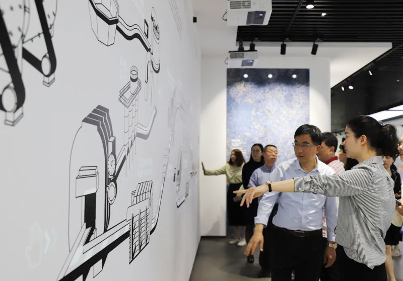 在參觀科達展廳的過程中,周總向來賓詳細介紹了科達的總體經(jīng)營狀況、生產(chǎn)布局以及各塊業(yè)務的發(fā)展情況。來賓對科達在陶瓷裝備領域具備的核心競爭力及整線配套實力表示由衷的贊嘆,并詳細了解了科達近年來在陶瓷裝備智能化、信息化上發(fā)力深耕的基本情況。來賓同時也對科達在鋰電材料、墻材機械、潔能環(huán)保等多元發(fā)展業(yè)務表示出濃厚的興趣,詳細咨詢了解。