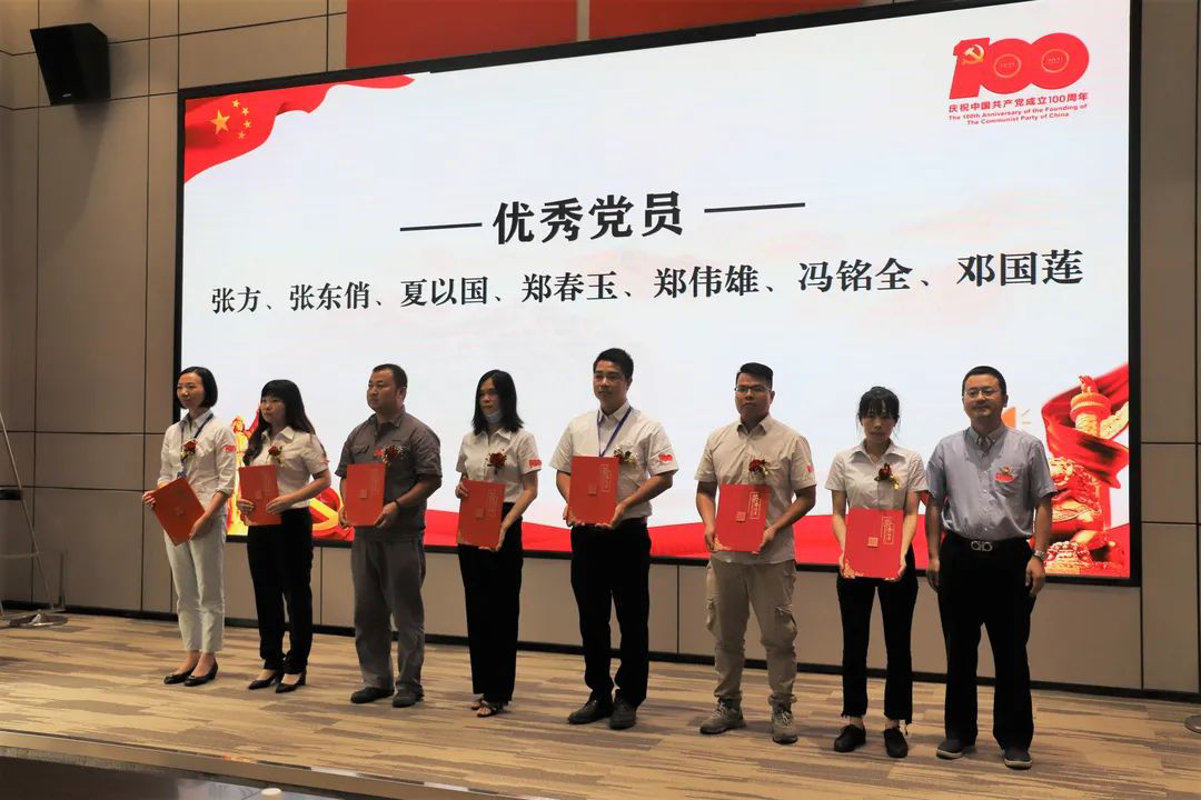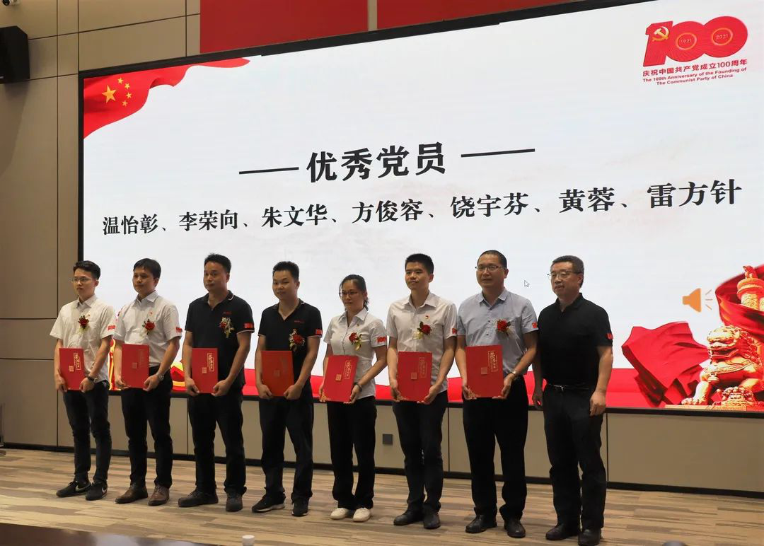 隨后,董事長邊程,副總裁曾飛、周鵬,黨委書記李斌分別為獲先進集體和個人代表頒發(fā)證書和錦旗。會上共表彰3支先進黨支部、24名優(yōu)秀黨員及3名優(yōu)秀黨務(wù)工作者。另外,推薦3名陳村鎮(zhèn)優(yōu)秀黨員及1名陳村鎮(zhèn)優(yōu)秀黨務(wù)工作者。