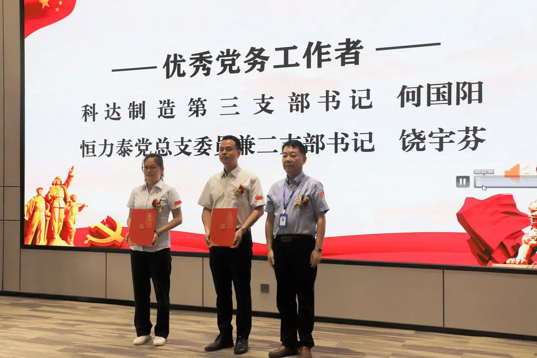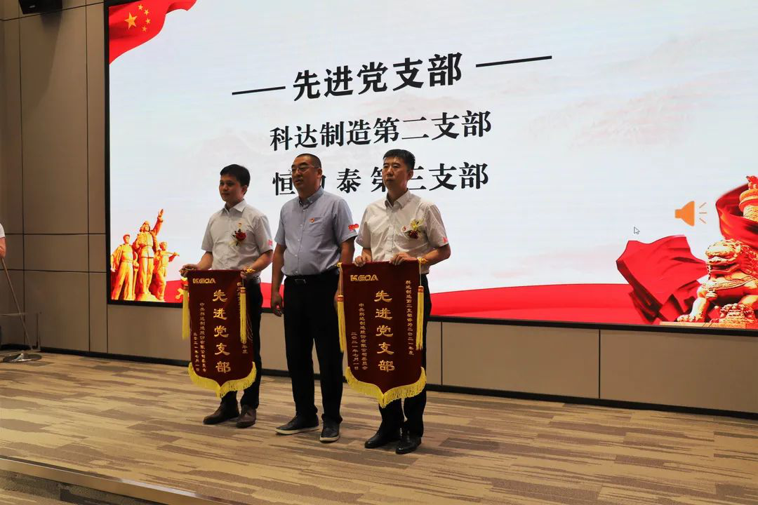 7月1日,偉大的中國共產(chǎn)黨迎來百年華誕,舉國同歡!上午8點,科達制造黨委在廣東總部隆重召開“慶祝中國共產(chǎn)黨成立100周年暨‘七一’表彰大會”。公司董事長邊程,副總裁曾飛、周鵬,黨委書記李斌,黨委副書記饒瓊,恒力泰黨員代表、科達本部全體黨員和入黨積極分子等近100人出席了大會。