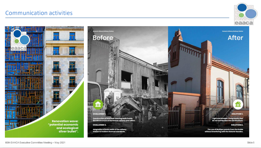 近日,科達新銘豐總經(jīng)理陳新疆受邀參加歐洲蒸壓加氣混凝土協(xié)會(EAACA)第60屆執(zhí)行委員會線上MS-T會議。出席該會議的成員有協(xié)會董事會成員,德國、波蘭、烏克蘭及土耳其加氣協(xié)會的負責人,Xella 集團負責德國、法國、東南歐、意大利、羅馬尼亞、以色列、土耳其等各國分公司的高管團隊,世界著名加氣集團H+H負責人及其他各國優(yōu)秀加氣廠商負責人。會議解讀了歐盟政策標準、世界發(fā)展趨勢與AAC行業(yè)發(fā)展現(xiàn)狀,探討了未來的發(fā)展方針戰(zhàn)略,并選舉出協(xié)會的新成員。