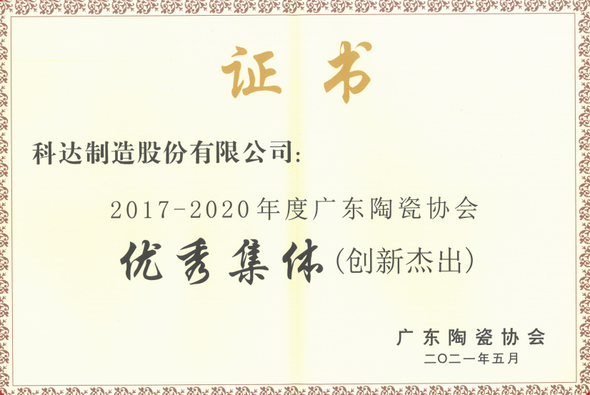 其中,科達(dá)制造榮獲2017-2020年度廣東陶瓷協(xié)會(huì)優(yōu)秀集體(創(chuàng)新杰出)及(科技和標(biāo)準(zhǔn)化先進(jìn))榮譽(yù),科達(dá)制造董事、總經(jīng)理?xiàng)顚W(xué)先榮獲2017-2020年度廣東陶瓷協(xié)會(huì)優(yōu)秀個(gè)人“杰出企業(yè)家”榮譽(yù)。