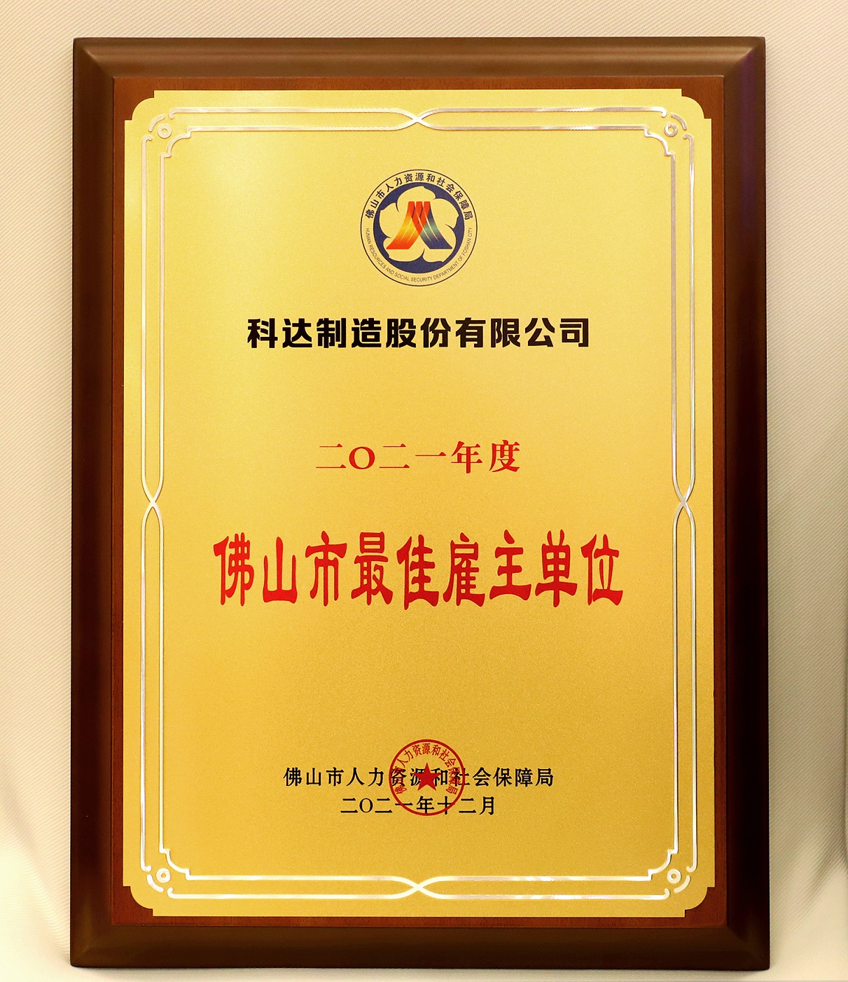 2021年12月2日上午,由佛山市人力資源和社會保障局、佛山市企業(yè)聯(lián)合會共同主辦,佛山市企業(yè)家協(xié)會承辦的2021年度“佛山最佳/好雇主”授牌儀式暨標(biāo)桿企業(yè)經(jīng)驗分享會在佛山皇冠假日酒店隆重舉行??七_制造股份有限公司等10家企業(yè)獲得2021年度“佛山最佳雇主”單位稱號;廣東普拉迪科技股份有限公司等31家企業(yè)獲得2021年度“佛山市好雇主”單位稱號。