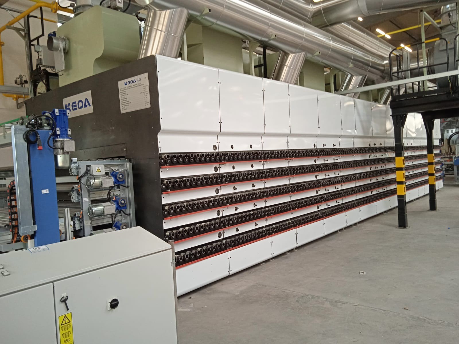 科達“MIH系列多層內循環(huán)節(jié)能干燥器” 減少了設備占地面積,采用高效雙出口循環(huán)風機加強熱風循環(huán),提高對流換熱速度及干燥效率;利用獨立箱體單元循環(huán)結構以及控制參與循環(huán)的進風和廢氣風量,減少干燥器內溫差,可有效調整干燥器前后段溫度;降低能耗,提高坯體干燥質量。