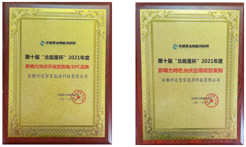 12月17日,“北極星杯”2021光伏影響力品牌評選頒獎典禮在江蘇南京舉辦,會上揭曉了十大類別獎項評選活動的獲獎名單。經過網友票選、專家組委會嚴格評比和層層篩選,安徽科達智慧能源科技有限公司榮獲 “影響力光伏開發(fā)投資商/EPC品牌企業(yè)”和“影響力特色光伏應用項目案例”兩個獎項。