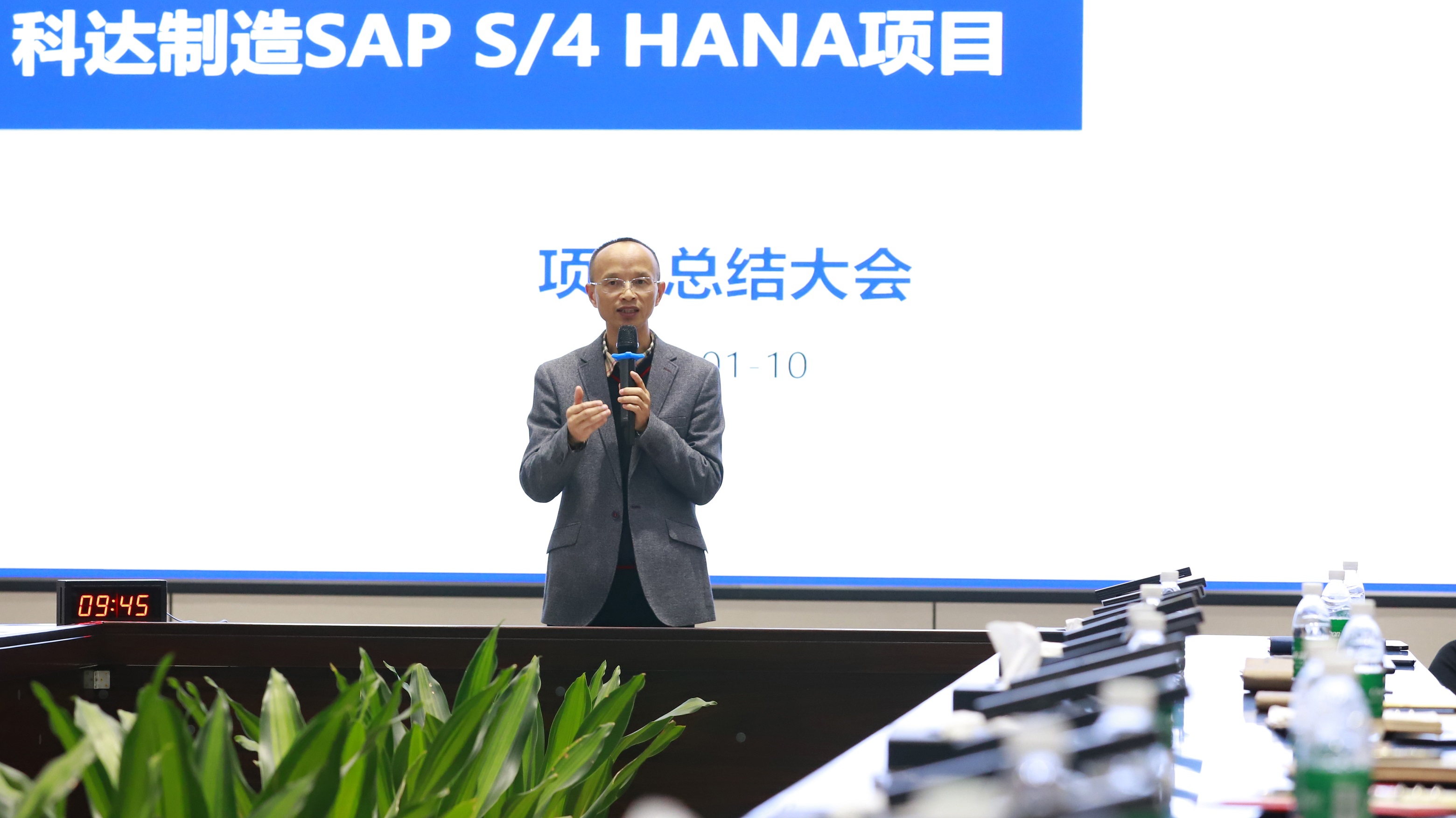 最后,科達(dá)制造總經(jīng)理?xiàng)顚W(xué)先發(fā)表重要總結(jié)講話。他表示,現(xiàn)在回顧整個(gè)項(xiàng)目過程是比較欣慰的,現(xiàn)在的成果也驗(yàn)證了當(dāng)初的選人決策是正確的。在2021年交貨壓力巨大,各種變革交織重疊的情況下,SAP項(xiàng)目仍能夠按照當(dāng)時(shí)的上線計(jì)劃執(zhí)行,是一件非常了不起的事情,從中也體現(xiàn)出了整個(gè)團(tuán)隊(duì)對(duì)公司變革的支持和認(rèn)同。他指出,SAP項(xiàng)目的成功也體現(xiàn)了之前的組織變革是正確的,充分調(diào)動(dòng)了中基層員工的積極性,“7.11”變革之后的一系列變革動(dòng)作都是圍繞著組織變革去開展的。他認(rèn)為,如果用一個(gè)關(guān)鍵詞去形容2021年科達(dá)所做的事,最貼切的就是“變革”,2022年需要繼續(xù)“深化變革”。他強(qiáng)調(diào),SAP上線是第一步,接下來,需要繼續(xù)維護(hù)好這個(gè)項(xiàng)目,讓它發(fā)揮更大的價(jià)值。同時(shí),公司還有很多地方需要改革,希望各位員工繼續(xù)以同樣的熱情和態(tài)度支持公司的變革工作,讓公司的效益越來越好!