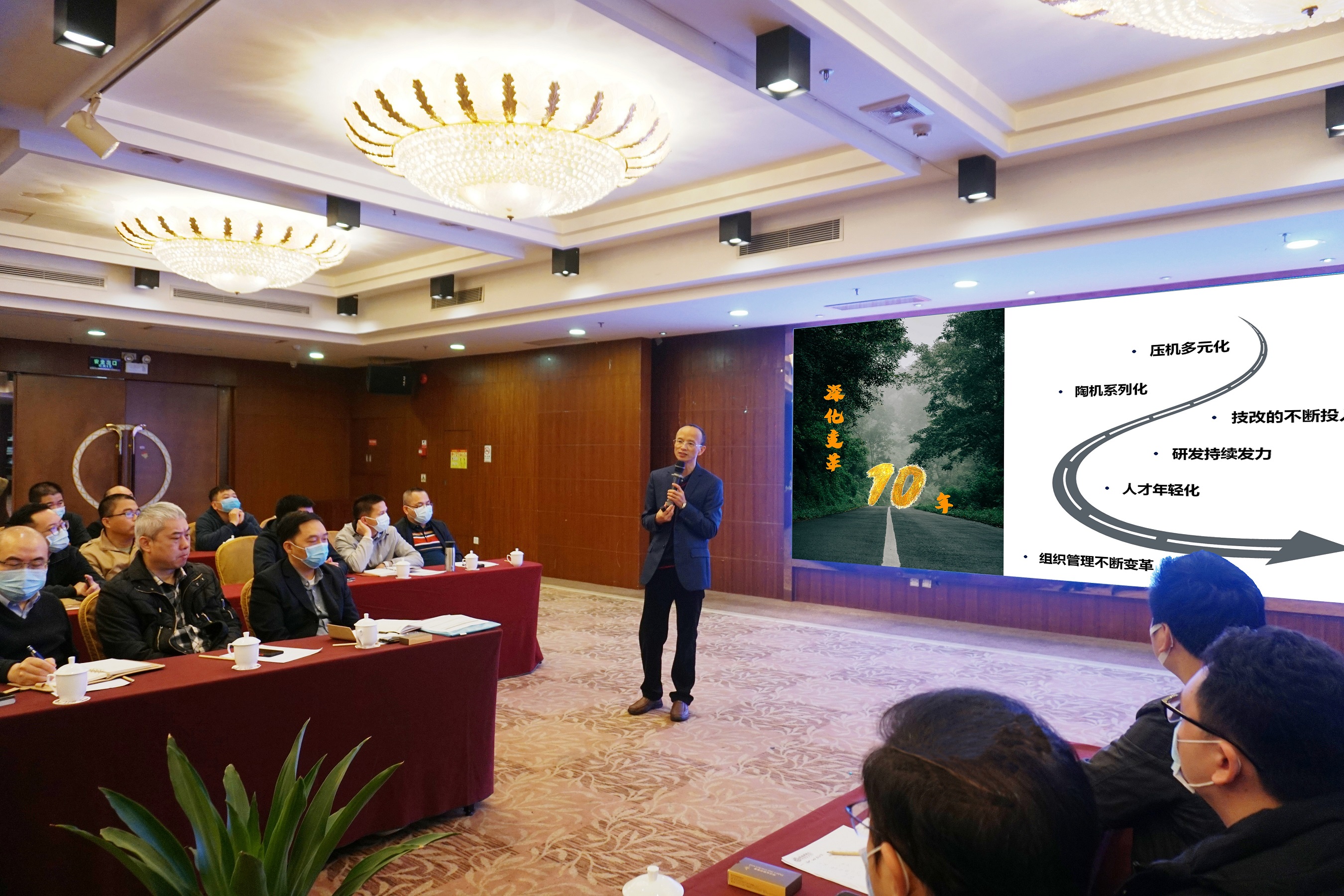 隨后,楊總提到集團(tuán)陶瓷機(jī)械板塊的戰(zhàn)略愿景:成為陶機(jī)世界第一,確定以“技術(shù)領(lǐng)先、市占率第一、成為全球主流客戶首選”的戰(zhàn)略目標(biāo)。圍繞戰(zhàn)略愿景及目標(biāo),在市場(chǎng)戰(zhàn)略上,繼續(xù)以“恒力泰機(jī)械、德力泰科技、恒力泰科技”三駕馬車組成力泰品牌,三個(gè)團(tuán)隊(duì)進(jìn)行獨(dú)立經(jīng)營(yíng),協(xié)同發(fā)展;在規(guī)模策略上,在穩(wěn)固發(fā)展現(xiàn)有業(yè)務(wù)的基礎(chǔ)上,尋找合適機(jī)會(huì),進(jìn)行適當(dāng)擴(kuò)張;在業(yè)務(wù)策略上,堅(jiān)持“化整為零”的思想,各品牌各經(jīng)營(yíng)單位做“?!弊觥熬?,而協(xié)同后的力泰品牌做到既“大”又“強(qiáng)”。做好產(chǎn)品、練好內(nèi)功,是永恒不變的制勝法寶。