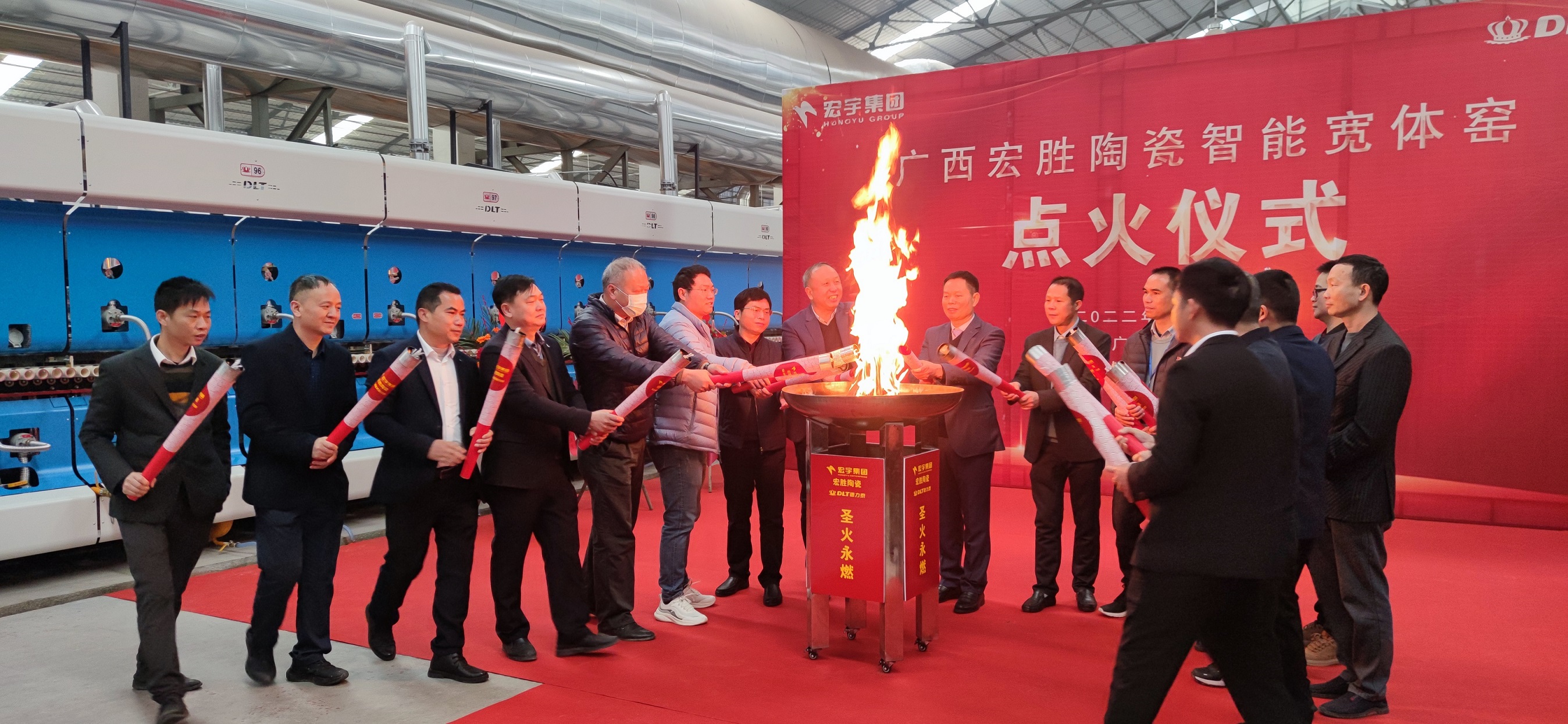 虎步奔騰開(kāi)勝景,春風(fēng)浩蕩展鴻圖。2022年立春后,宏宇集團(tuán)迎來(lái)首件開(kāi)篇大喜事。2022年2月10日(農(nóng)歷正月初十)上午吉時(shí),宏宇集團(tuán)廣西生產(chǎn)基地宏勝陶瓷在集團(tuán)副總經(jīng)理兼生產(chǎn)基地總經(jīng)理譚鋁光、廣西宏勝基地總經(jīng)理李勇的率領(lǐng)下,為德力泰承建的全拋釉新生產(chǎn)線舉行隆重點(diǎn)火儀式。