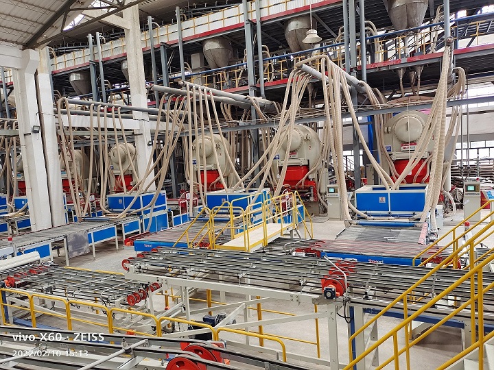 該項(xiàng)目引進(jìn)了德力泰一條工業(yè)“4.0能效標(biāo)桿數(shù)智時(shí)代”DFC燒成窯(W3150/L407.4M)、一條EM系列高效節(jié)能六層干燥器。按設(shè)計(jì)生產(chǎn)規(guī)格為800×800×10.5mm的高品質(zhì)全拋釉磚,產(chǎn)能3.6萬(wàn)m2/天;生產(chǎn)規(guī)格為400×800×7.5mm的高端中板產(chǎn)品,產(chǎn)能4萬(wàn)m2/天。