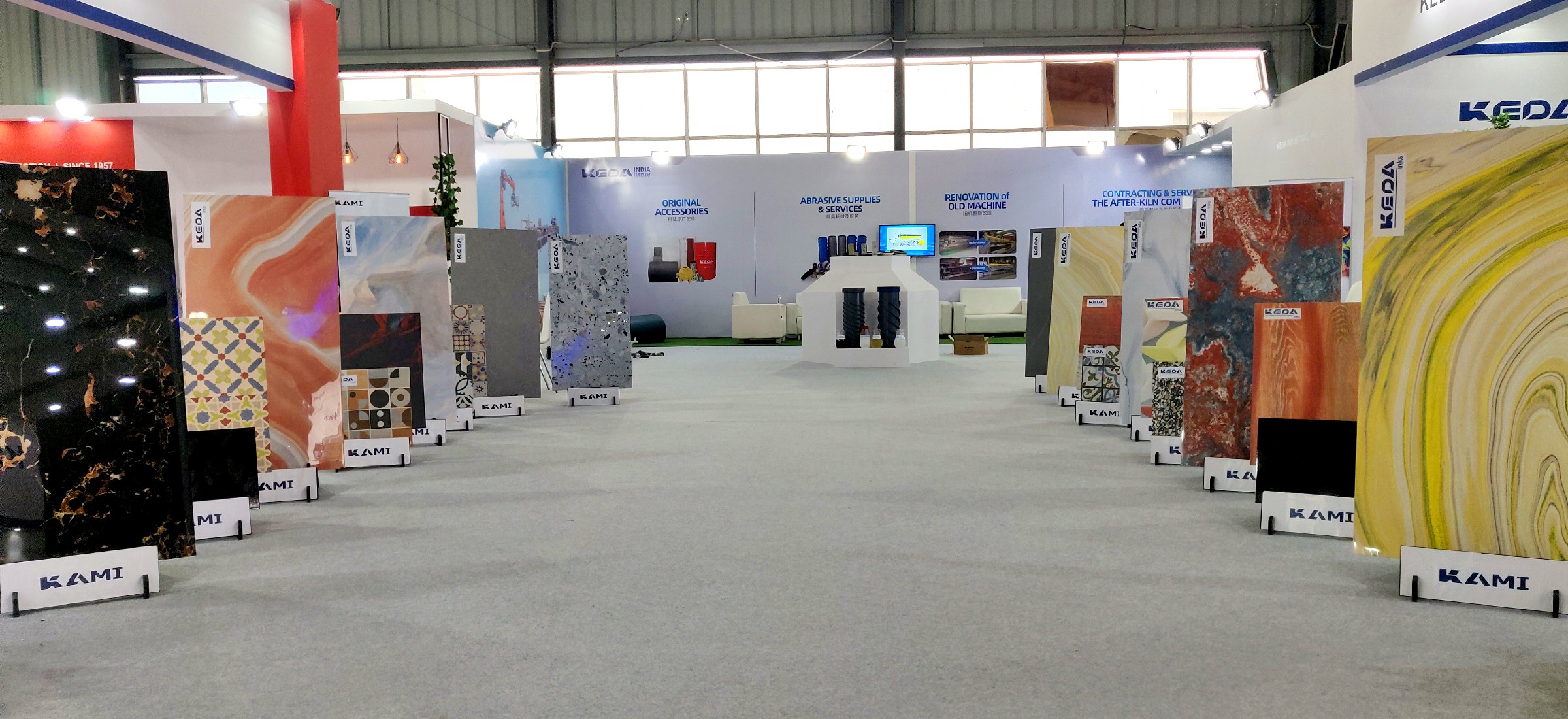 在本次近300平方米的科達展位上,科達強勢推出以KD33000領銜的超大噸位板材系列壓機、陶瓷大板寬體窯爐、七層干燥器、智能倉儲、拋磨設備、包裝線、大板切割機等陶機產品;KEDA India 也展示了配件&耗材銷售、設備翻新改造和產線承包等服務業(yè)務;印度KAMI則通過多片當下最流行的陶瓷大板樣品來展示功能性墨水、釉料的特殊效果。這些不僅顯示了科達在陶瓷工業(yè)上取得的進步與創(chuàng)新,同時也彰顯了科達在世界陶瓷機械行業(yè)的品牌實力。