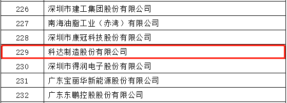 近日,廣東省企業(yè)聯(lián)合會、廣東省企業(yè)家協(xié)會公布了“2021年廣東企業(yè)500強”、“2021年廣東制造企業(yè)100強”等榜單。其中,科達制造位列“2021年廣東企業(yè)500強”榜單第229位,“2021年廣東制造業(yè)企業(yè)100強”榜單第84位。