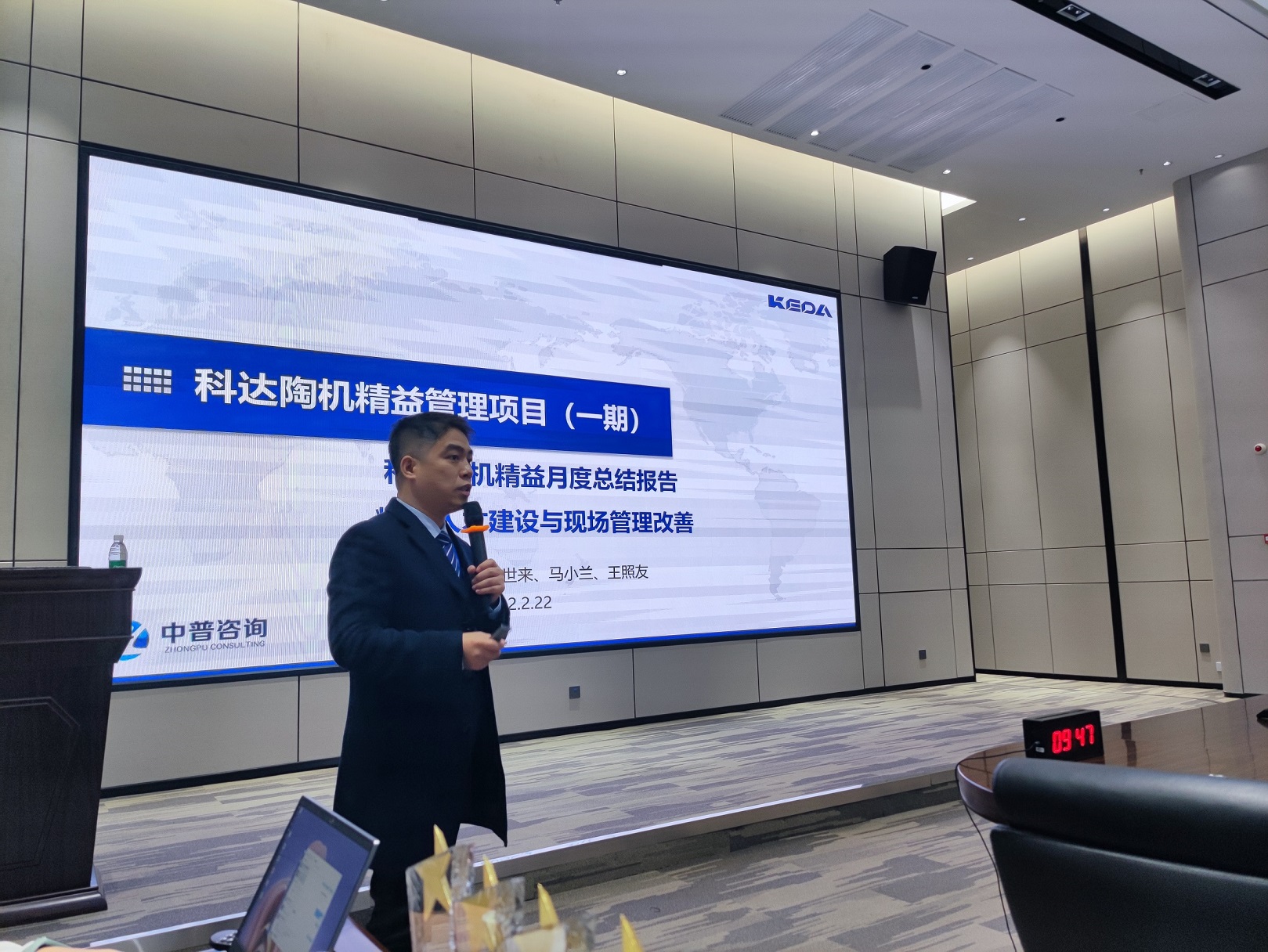 項目總監(jiān)余一強調(diào),科達始終是中普咨詢的“A+級客戶”,科達陶機精益項目始終是中普咨詢最重視的項目,全體咨詢老師務必把實際改善和指標改善統(tǒng)一起來,逐步積累小改善到“大質(zhì)變”,最晚到7月份,在數(shù)據(jù)上真實可信地體現(xiàn)出全體科達同事的努力。