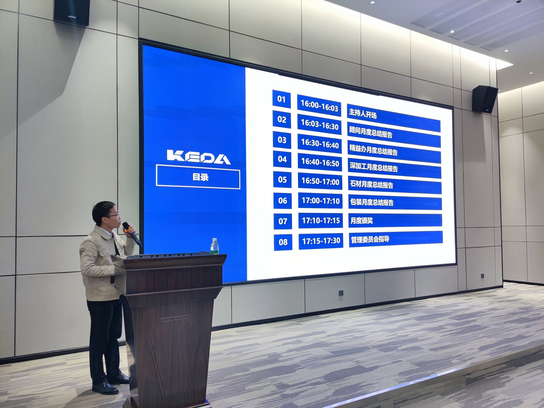 2022年2月22日,科達陶機精益管理項目階段總結(jié)大會隆重召開??七_制造總經(jīng)理楊學先、總經(jīng)理助理邱紅英、包裝機械事業(yè)部總經(jīng)理唐俊亭、石材機械公司總經(jīng)理宋志剛出席了會議。