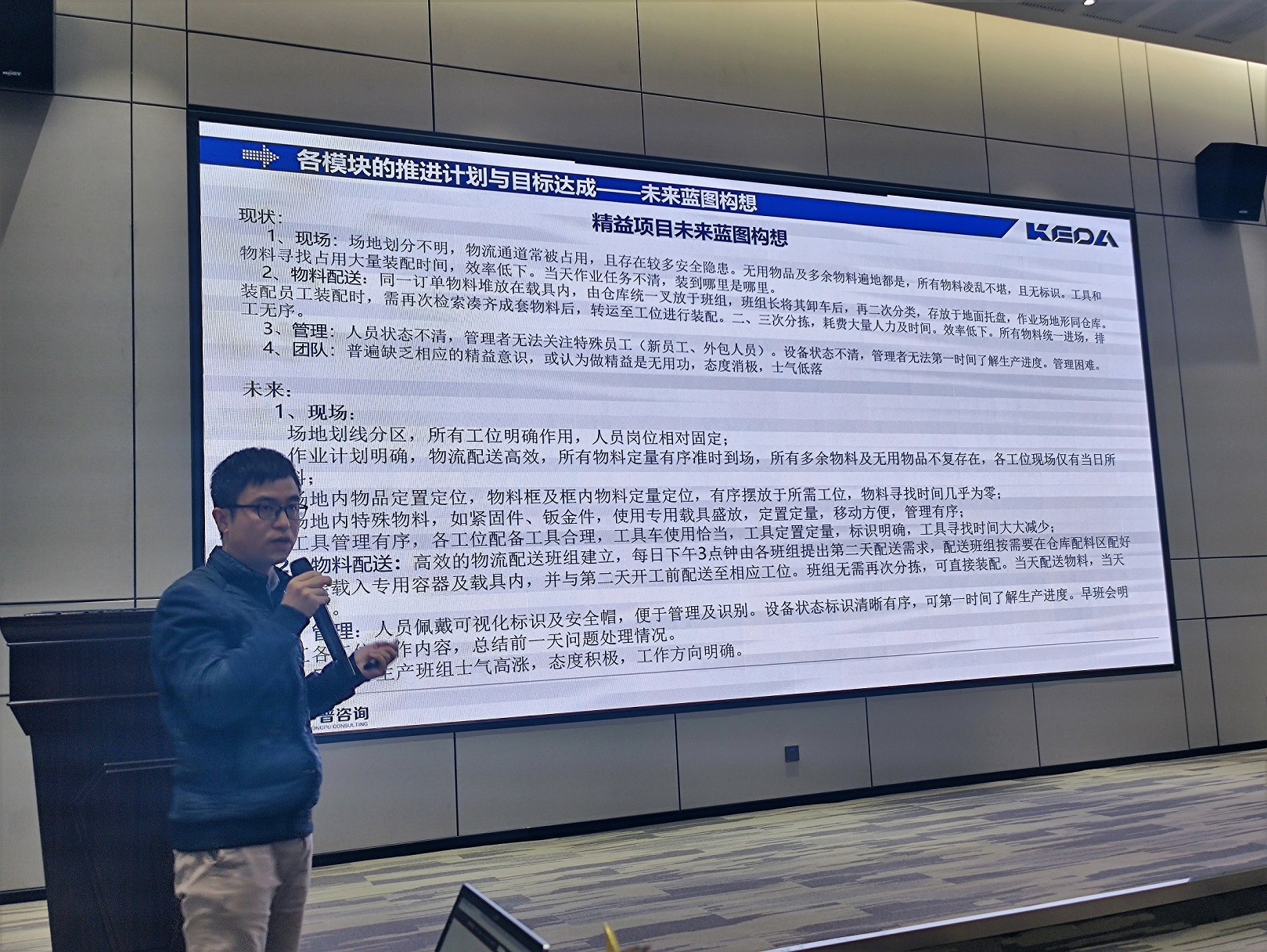 顧問團隊代表王世來、姜義力回顧了項目總體目標和思路,重點匯報了相應模塊工作進度成果和問題、下一階段推進計劃,分享了現(xiàn)場改善和課題改善的案例,他們指出:目前計劃交付改善工作進度稍有落后,但通過調(diào)整計劃和資源注入,下一階段將迎頭趕上。