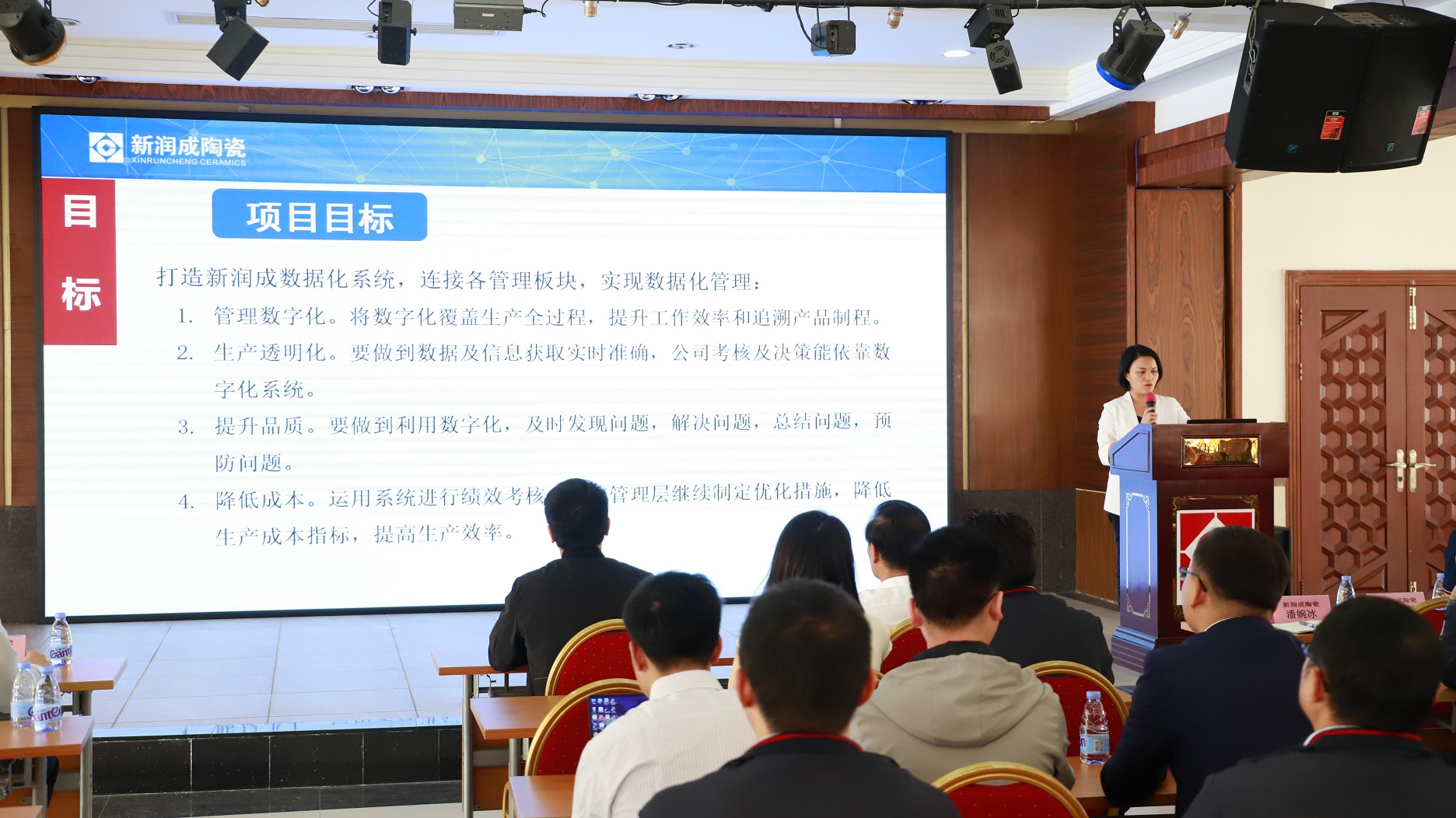會議伊始,新潤成陶瓷財務(wù)部經(jīng)理潘婉冰宣讀了管理細(xì)則,提出了整個項目的目標(biāo)——數(shù)字化管理、生產(chǎn)透明化、提升品質(zhì)、降低成本。并介紹了項目的組織架構(gòu)及相關(guān)權(quán)責(zé),為保證項目的順利推動實施,新潤成公司建立了溝通培訓(xùn)機(jī)制,特設(shè)立項目周例會、項目上線動員會、培訓(xùn)考試及系統(tǒng)測試等。