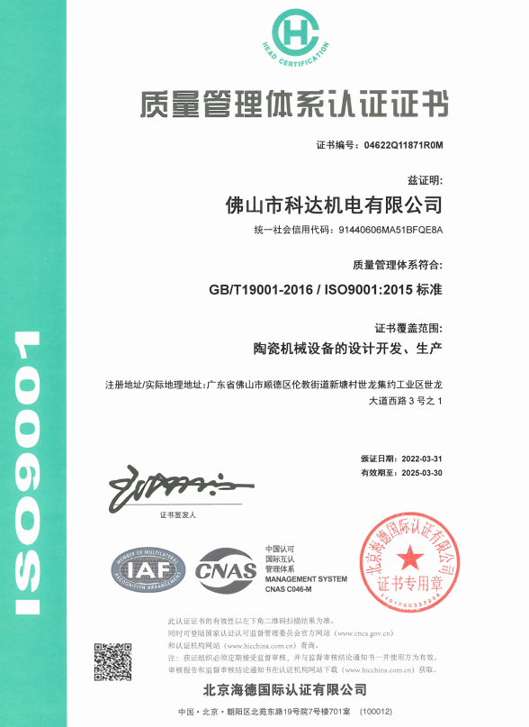 3月24日和3月27-28日,北京海德國際認(rèn)證有限公司組織專家對(duì)佛山市科達(dá)機(jī)電有限公司(以下簡稱為“佛山科達(dá)機(jī)電”)進(jìn)行了兩天半的ISO9001質(zhì)量管理體系認(rèn)證審核工作。