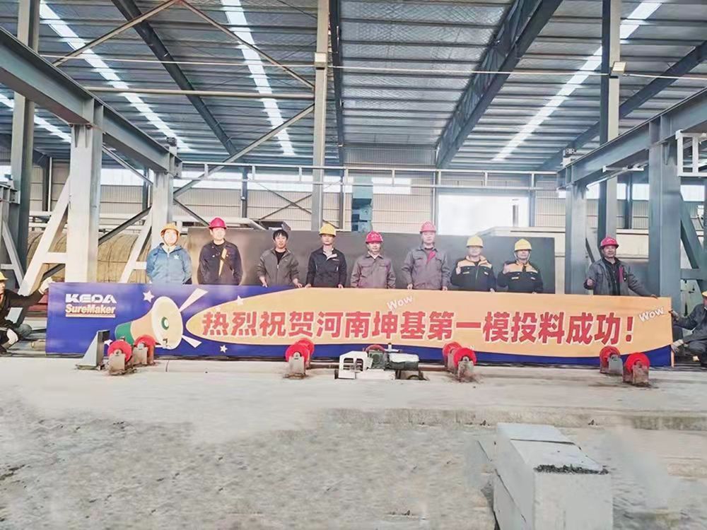 近日,位于河南省的澠池縣坤基新型墻材(以下簡稱河南坤基)有限公司年產(chǎn)50萬方蒸壓加氣混凝土板材生產(chǎn)線項(xiàng)目一次投料成功。該項(xiàng)目由科達(dá)新銘豐承建,是科達(dá)新銘豐在中原地區(qū)的又一重要項(xiàng)目。
