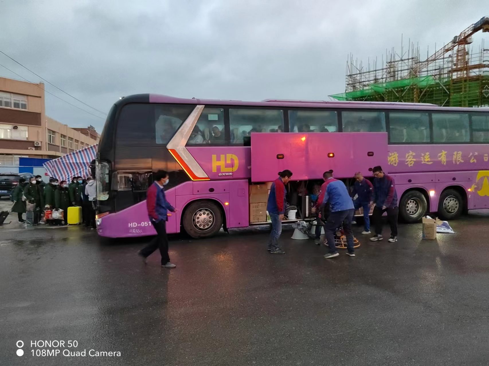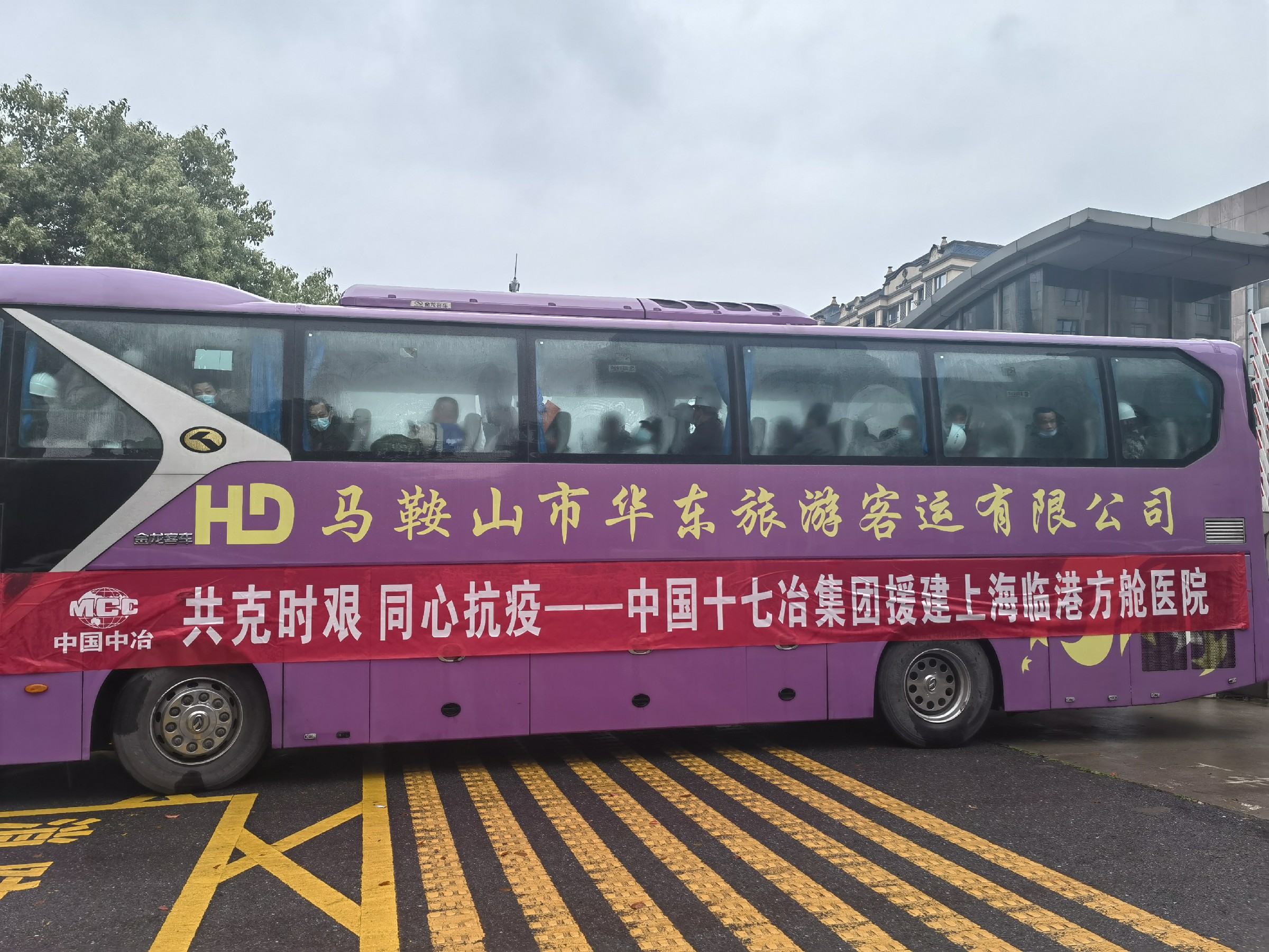 2022年4月13日下午5時(shí),兩臺(tái)共載著100余人的大巴車緩緩啟動(dòng),前往目的地上海。這是中國十七冶集團(tuán)援建上海臨港方艙醫(yī)院的第一批集結(jié)團(tuán)隊(duì),同時(shí)也是安徽科達(dá)華東新能源汽車旅行服務(wù)有限公司(以下簡稱“科達(dá)華東新能源汽車公司”)旗下子公司馬鞍山市華東旅游客運(yùn)有限公司(以下簡稱“華東旅游客運(yùn)公司”)護(hù)送援滬團(tuán)隊(duì)的第一批運(yùn)輸車輛。