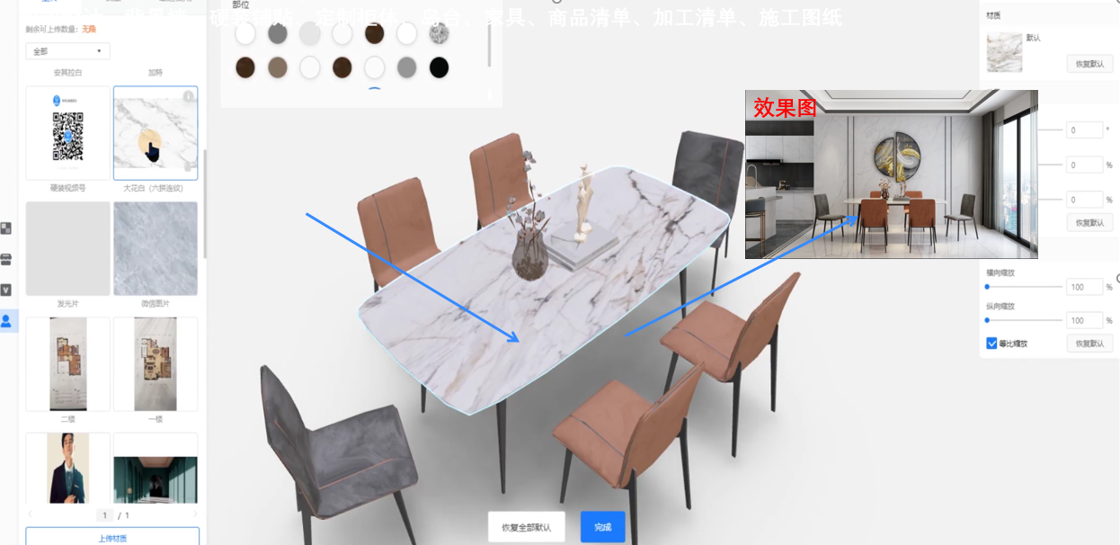 數(shù)字化設(shè)計平臺,庫存選材信息結(jié)合CAD圖紙或3D建模實(shí)現(xiàn)基于真實(shí)庫存版式的設(shè)計展示,并且通過智能生產(chǎn)實(shí)現(xiàn)“所見即所得”交付。