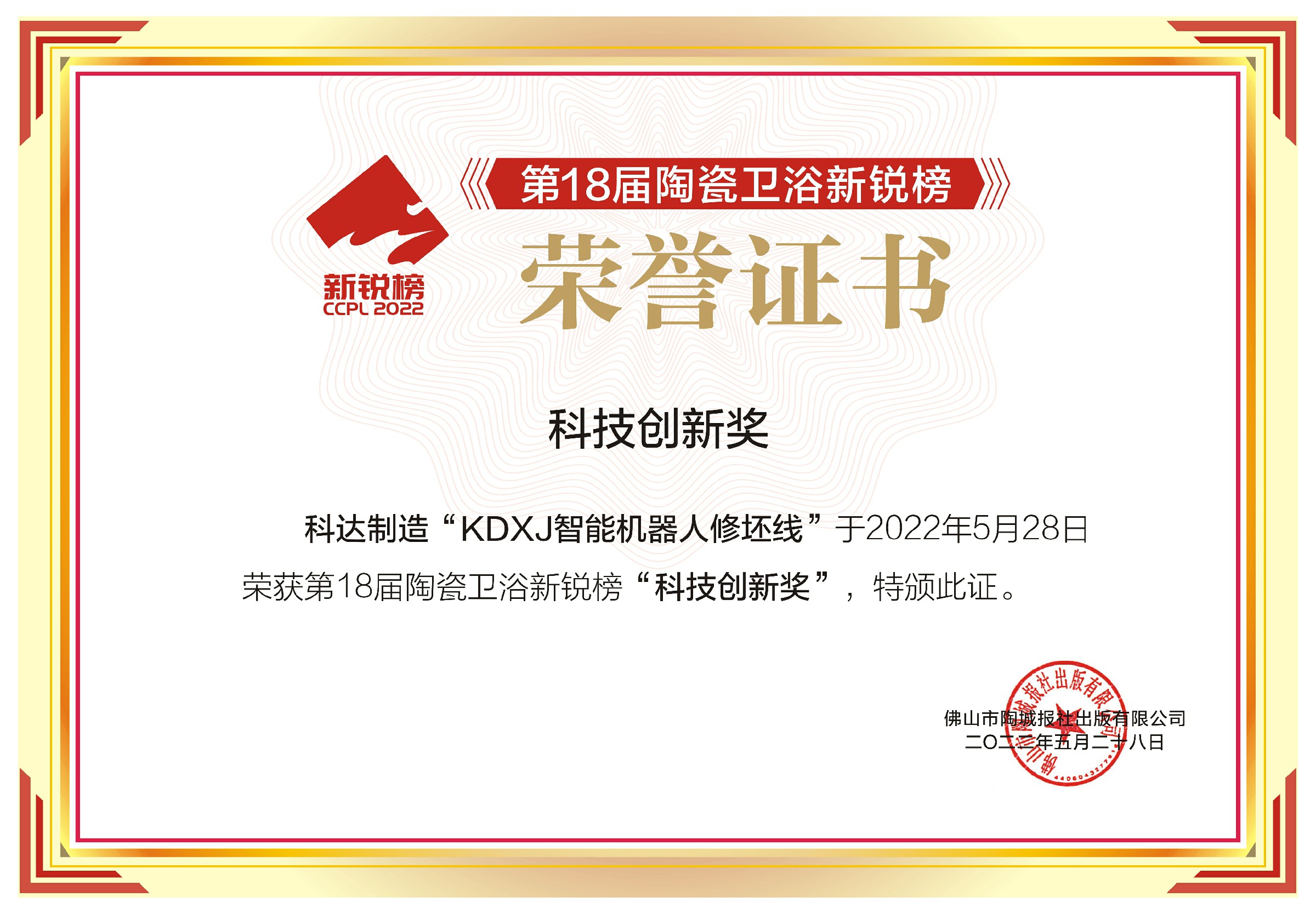 加速日用瓷行業(yè)自動(dòng)化升級(jí)換代步伐,KDXJ智能機(jī)器人修坯線獲科技創(chuàng)新獎(jiǎng)