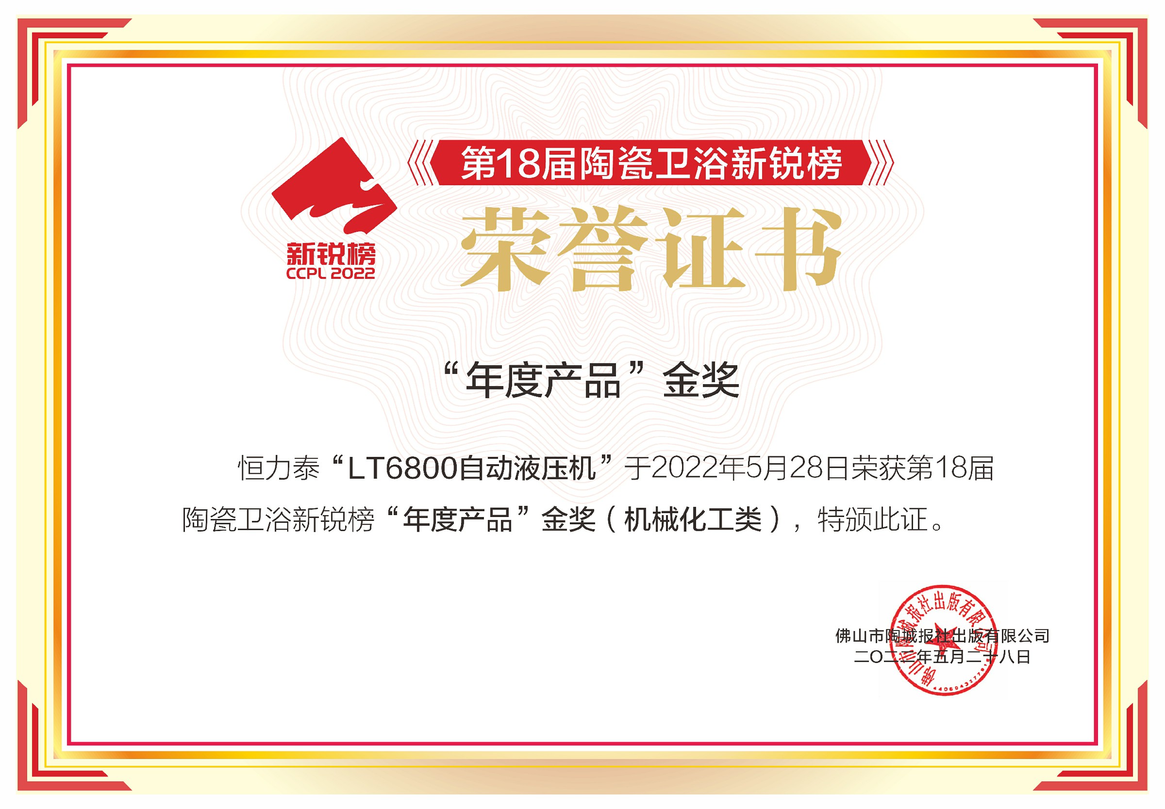 年度產(chǎn)品金獎(jiǎng),LT6800自動(dòng)液壓機(jī)