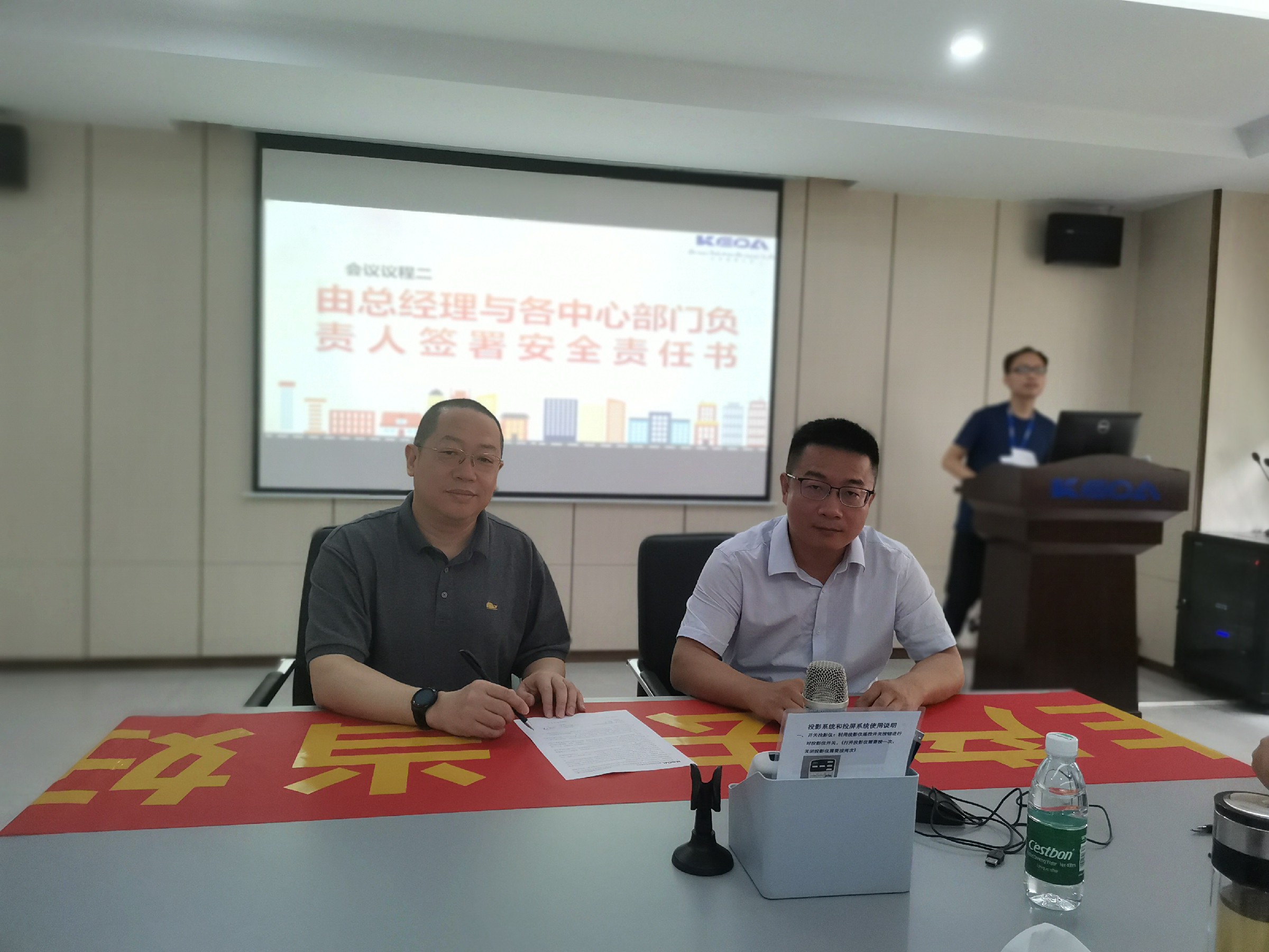 會議上,何總發(fā)表動員講話,強調(diào)公司各級管理人員,必須要牢固樹立“以人為本、生命至上”的理念。堅守安全紅線,堅決做到“生產(chǎn)必須安全,安全才能生產(chǎn)”的理念。最后,何總與各中心部門負(fù)責(zé)人簽署了安全責(zé)任書。