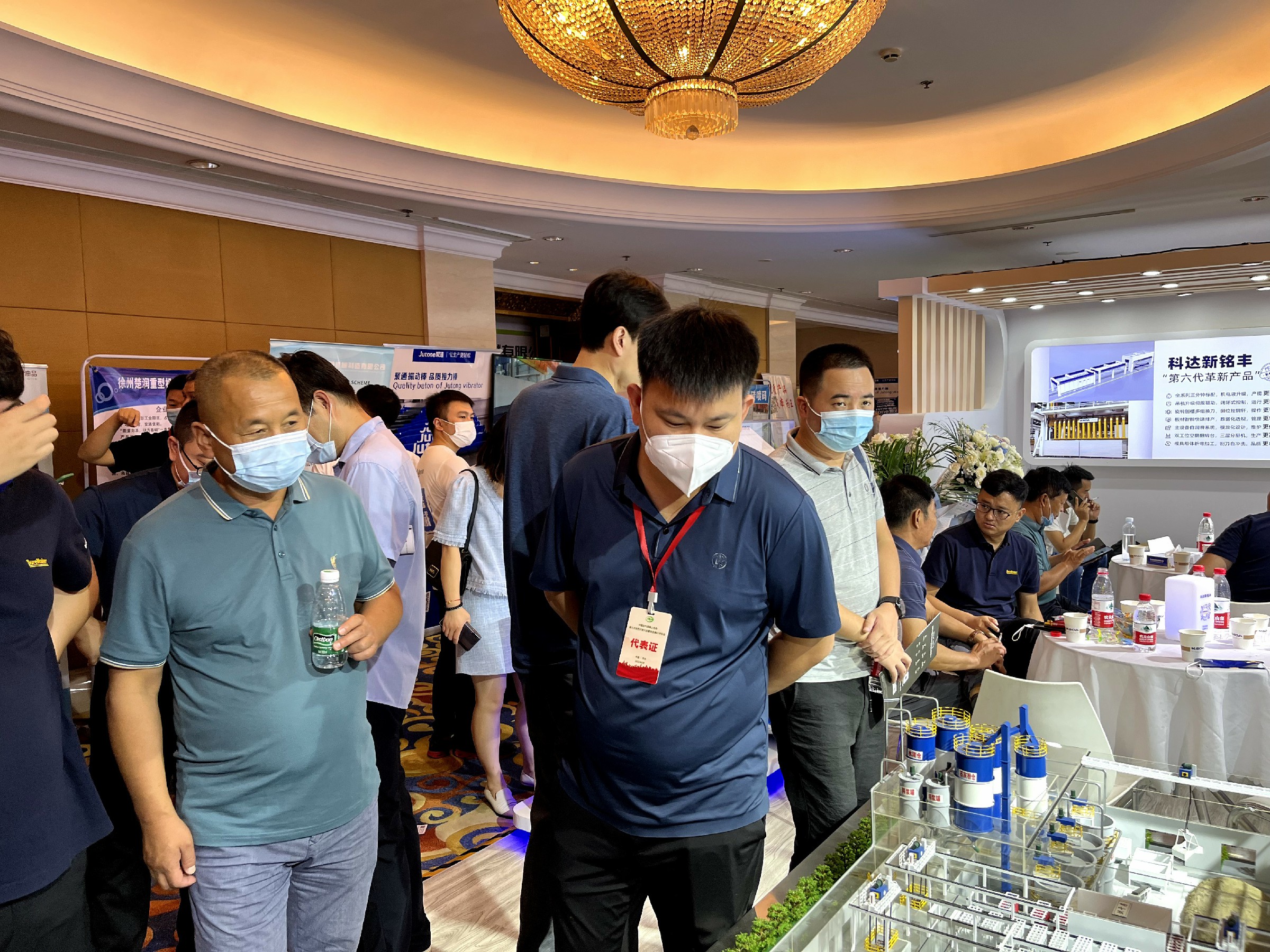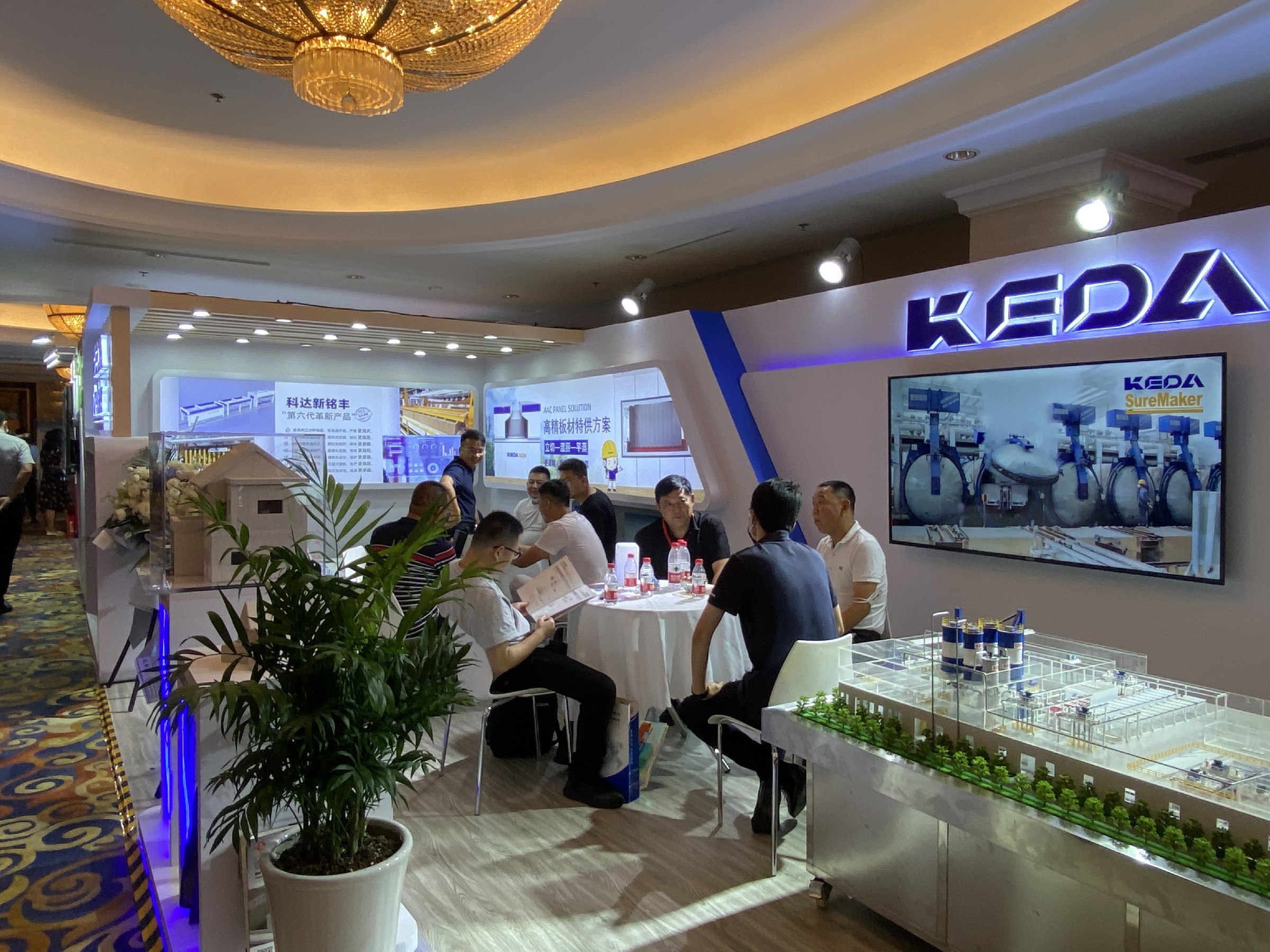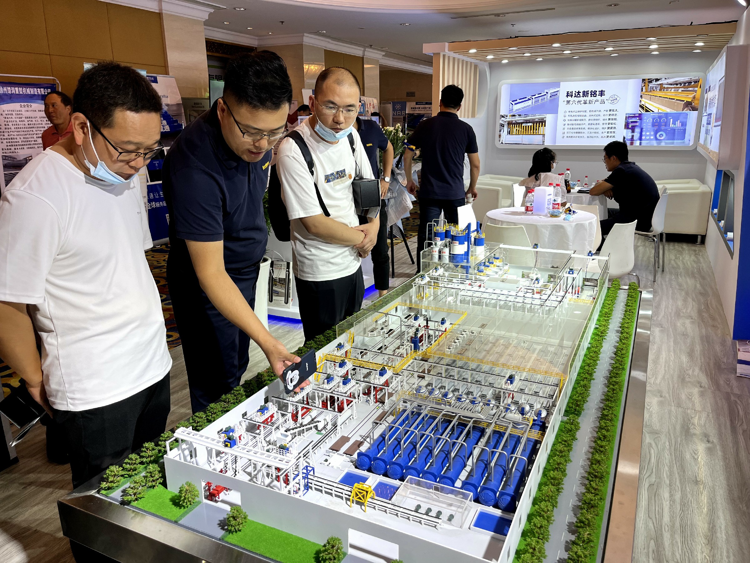 行業(yè)新技術(shù)新產(chǎn)品新成果也是年會看點之一,科達(dá)新銘豐在展會上首發(fā)了第六代全新產(chǎn)品。該套生產(chǎn)線方案針對行業(yè)痛點和客戶廣泛需求的大產(chǎn)能、高精度做了全面升級,并針對高精度板材的生產(chǎn)創(chuàng)新推出了立切-濕掰-臥蒸的生產(chǎn)工藝。全新升級的科達(dá)新銘豐AAC整線系統(tǒng)吸引了眾多客戶駐足交流。